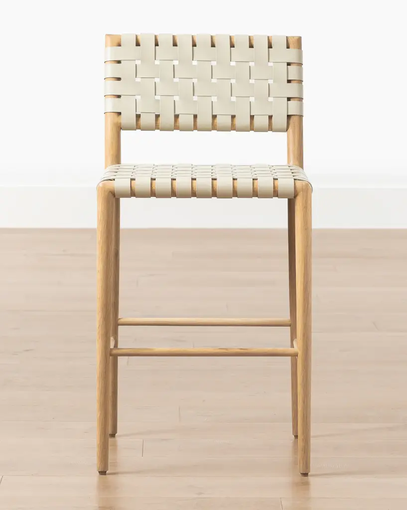 Expertly crafted with acute attention to detail, we designed the Greely Stool with a light and airy, yet sophisticated feel. Woven with aniline dyed leather wrapped around a solid white oak frame featuring slightly tapered legs, these woven counter stools instantly elevate your kitchen space with their modern, streamlined silhouette.