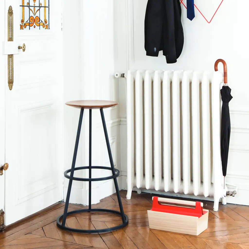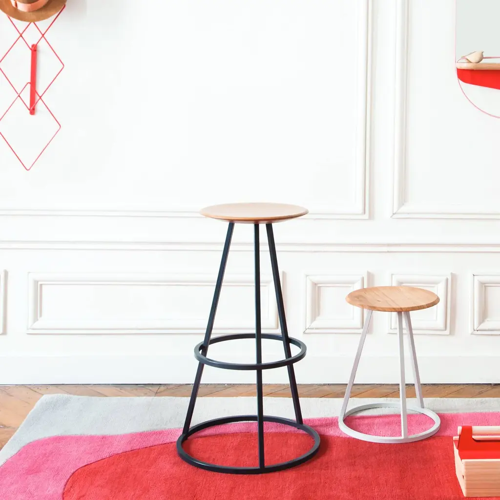 With Gustave, French designer Charles Seuleusian adapts his geometric, airy-looking stool as smart bar and counter seating. From French maker Hartô, the solid-wood and matte-lacquered metal construction is grounded in its floor-hugging circular base. With a generous contoured seat in natural solid oak with a matte finish, the stool’s base comes in a range of specially curated colors.