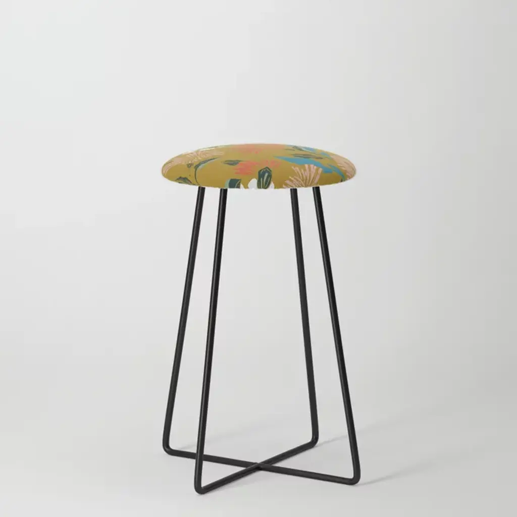 Height Options: Choose between counter (25") and bar (30") heights to suit your needs.Finish: Steel legs available in elegant gold or classic black to complement your decor.Comfort: Cushiony seat wrapped in high-quality vegan leather for a luxurious but durable feel.Sturdy Construction: Supported by durable steel frames for long-lasting use.Bar Stools:15" x 15" x 30" (H)Legs measure 28" highAssembly requiredBar stool legs include foot restCounter Stools:15" x 15" x 25" (H)Legs measure 23" highAssembly requiredNote: Counter stool legs do not include foot restRegular Cleaning: Wipe clean with a soft, damp cloth to remove dust and light spills.For tougher stains, use a mild soap solution and gently blot the area. Avoid using harsh chemicals or abrasive cleaners that may damage the vegan leather.Vegan Leather Care: To maintain the appearance of the vegan leather, apply a leather conditioner specifically designed for faux leather every 3-6 months. Avoid placing stools in direct sunlight to prevent fading and cracking of the vegan leather.Steel Frame Maintenance: Dust the steel frame regularly with a dry cloth. For stubborn marks, use a slightly damp cloth with a mild detergent, then dry thoroughly. To prevent rust, avoid exposing the steel frame to excessive moisture.Preventive Care: Use felt pads under the stool legs to protect your floors and reduce noise. Avoid dragging the stools across the floor to prevent damage to both the stools and your flooring.SHIPPING: Items are made to order and typically ship within 3-4 business days. Click here for more information about delivery options.Furniture sales are final. Click here for more information on returns.