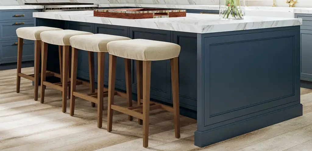 The traditional saddle-style stool gets a fresh update with elegant design details. The simple wide-open frame of our new Harper counter stool is inspired by the straightforward look of classic American design, while the soft, serpentine curve on its upholstered seats exudes a rich traditional style. Also see Harper barstool (207085)