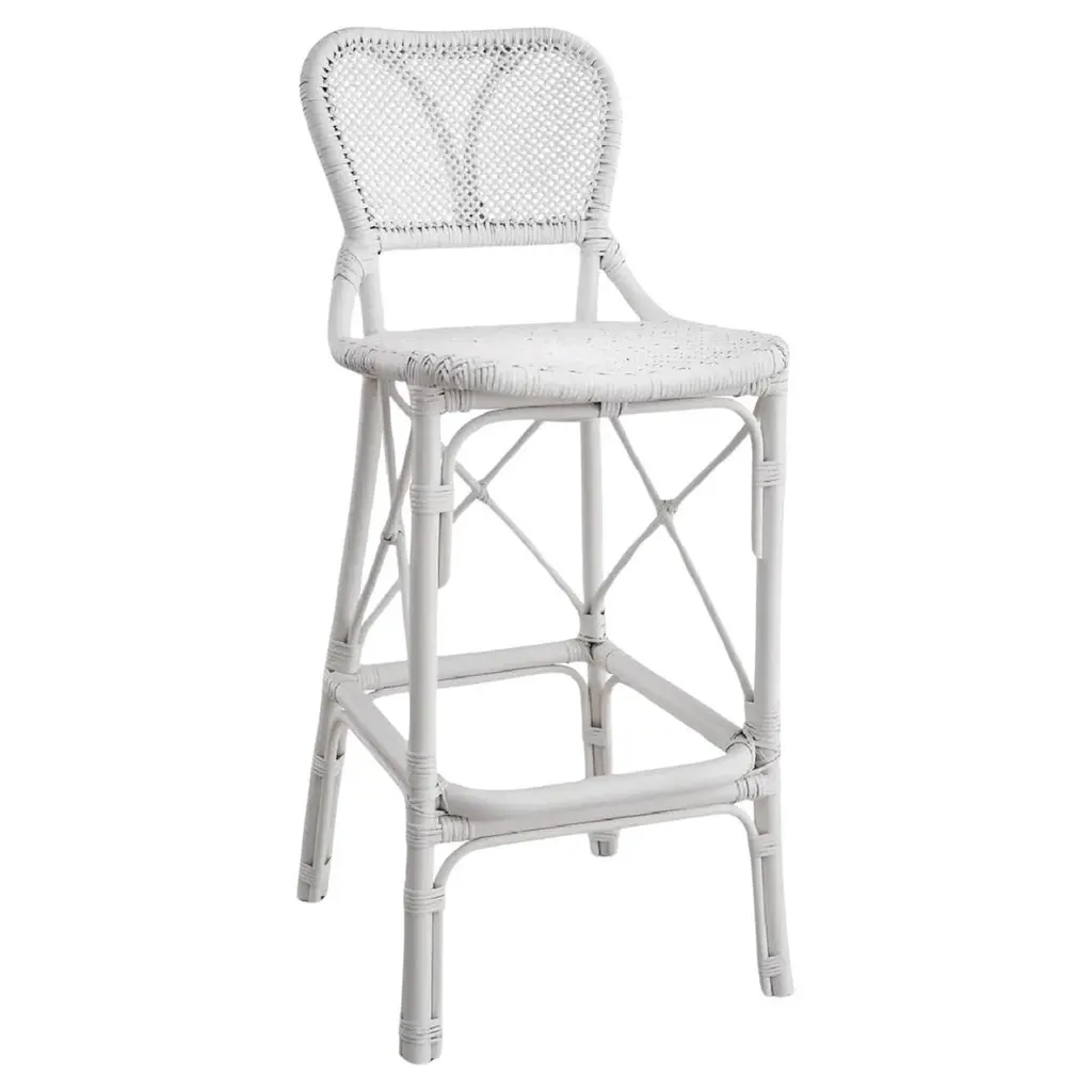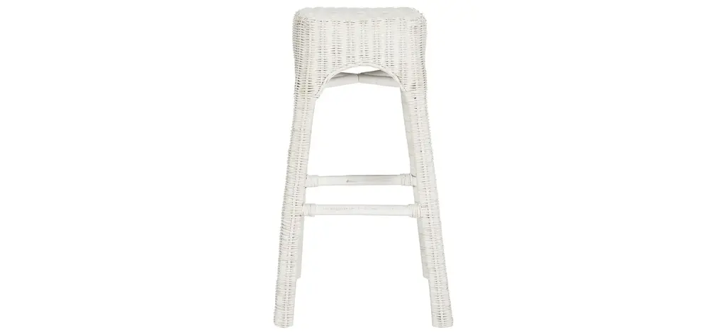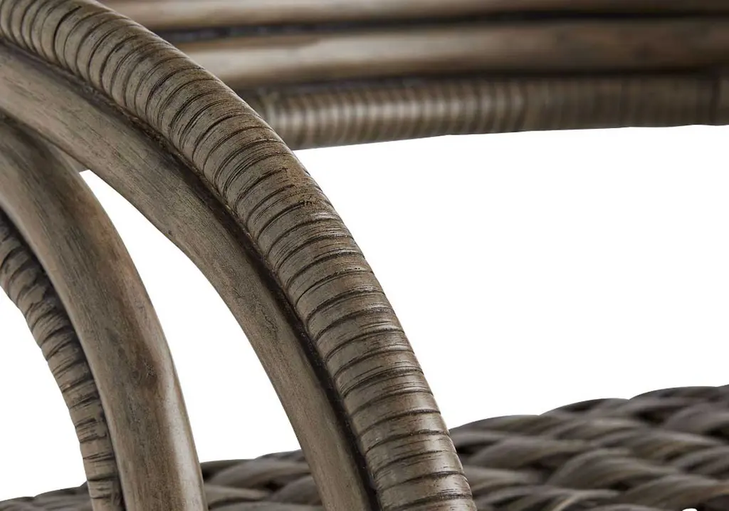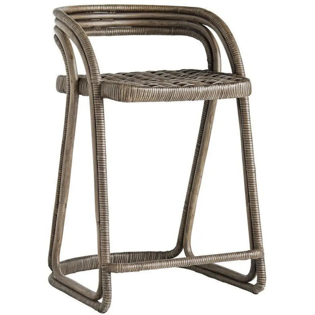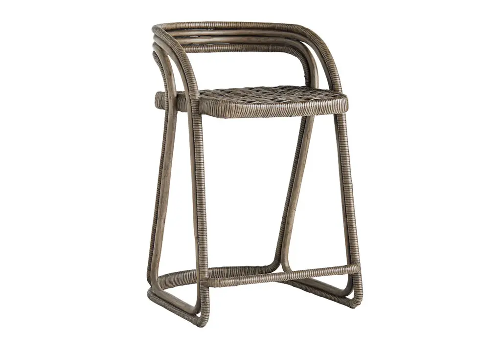 Rustic and eye-catching, this curved stool makes an organic statement with its handcrafted construction. Its thick, woven seat features a traditional cane pattern complemented by its rattan peel-wrapped frame. A rich gray finish enhances its natural design, creating a versatile, handsome addition. Style under a kitchen counter or island for a refined, textured aesthetic.