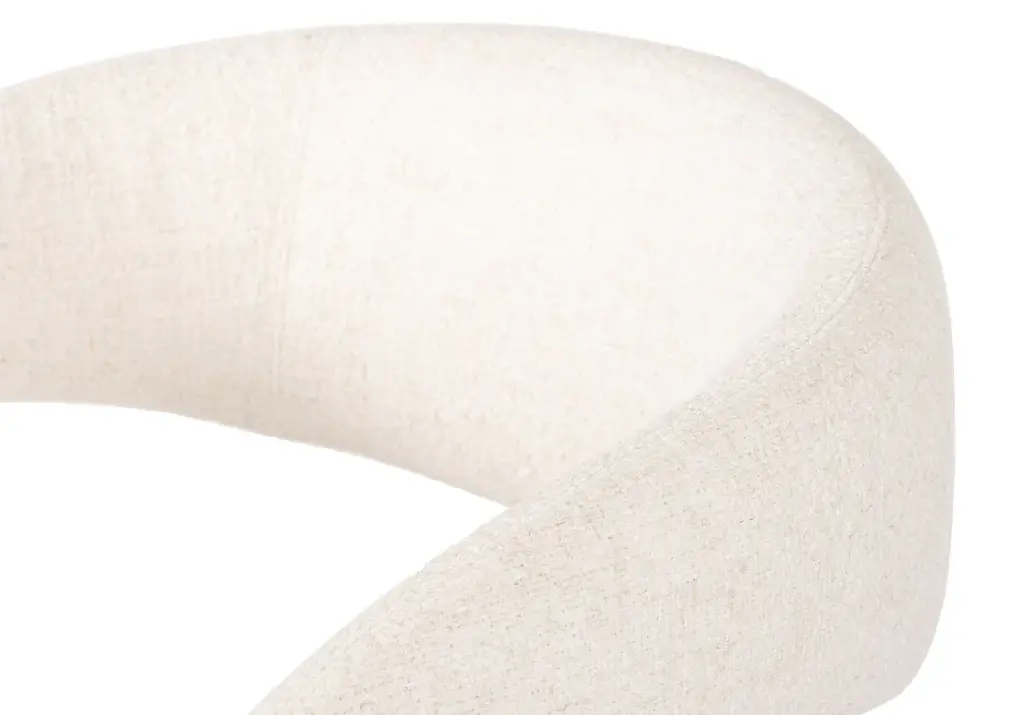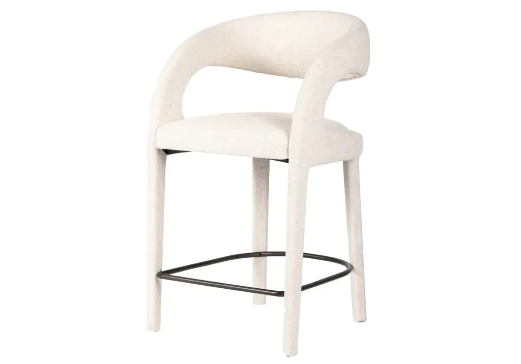 The Hawkins Stool is a luxe addition with its curved form fully upholstered in a fresh neutral, contrasted by a gunmetal kick plate. Style several under a bar, counter, or kitchen island for a chic, refined look.