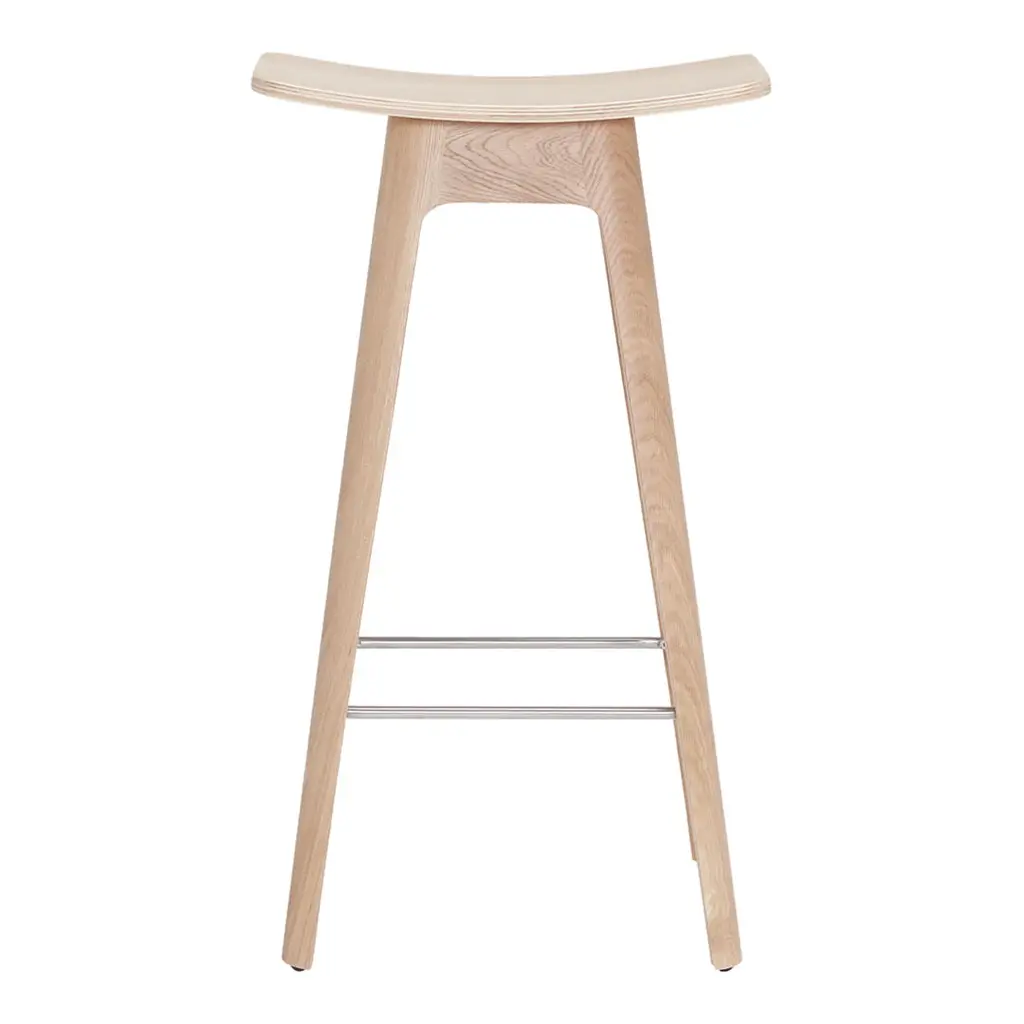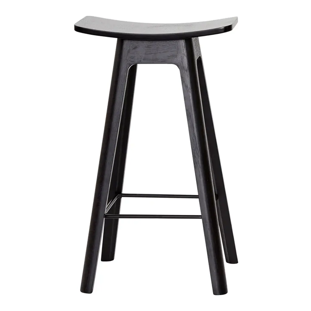 The HC1 bar stool is designed by Anne Qvist and is characterised by its tasteful design. The stool has a wonderful lightness and a soft aesthetic. It is elegant and can be used in many contexts. The stool comes in several models and styles. The beautiful wooden base is available in white pigmented matte lacquered oak or black lacquered oak, and comes in two heights. Choose between an upholstered version with a black PU leather seat or a veneer seat. The chair also has the practical feature of being possible to hang up on a high table. The HC1 bar stool is from the same range as the HT1 table by Andersen.