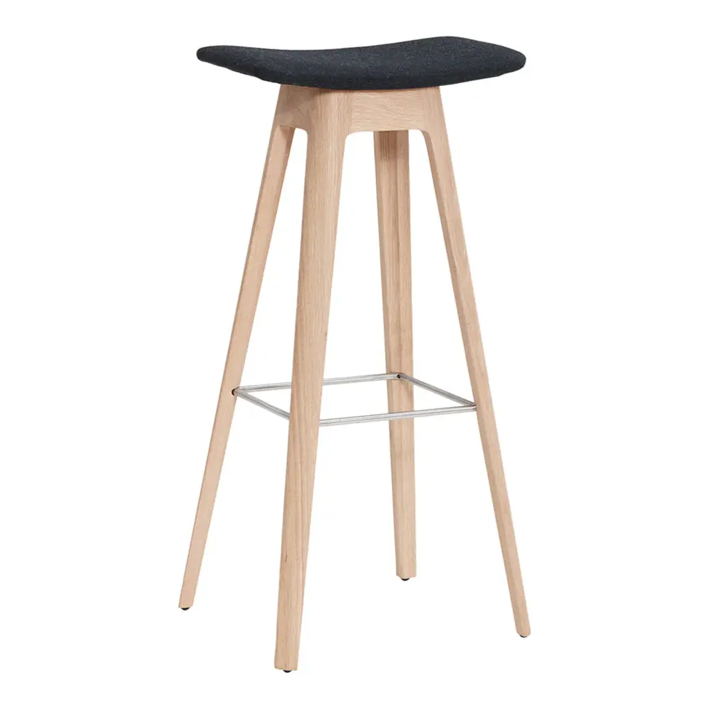 In collaboration with architect and designer Anne Qvist, Andersen has created a new and extraordinary bar stool. The stool has a wonderful lightness and a soft visual style. It is elegant and very tastefully done and can be used in many contexts. The stool comes in several variants and styles. The beautiful wooden base is made of oak and is also available in black lacquer. You can choose between padded or wooden seat. The Chair is available in two heights and also has the unique detail that it can be hung on a high table. Practical and elegant – it's simple.