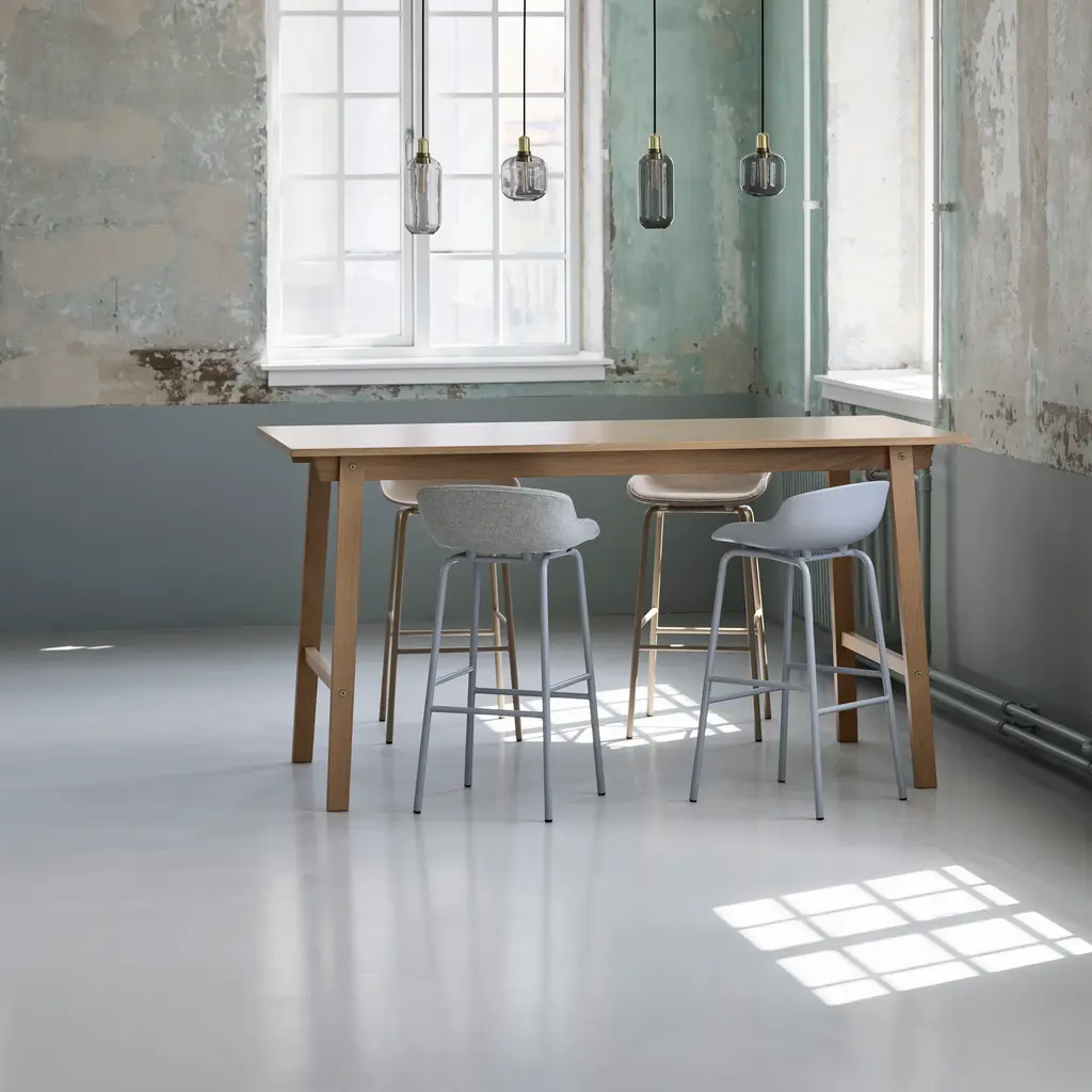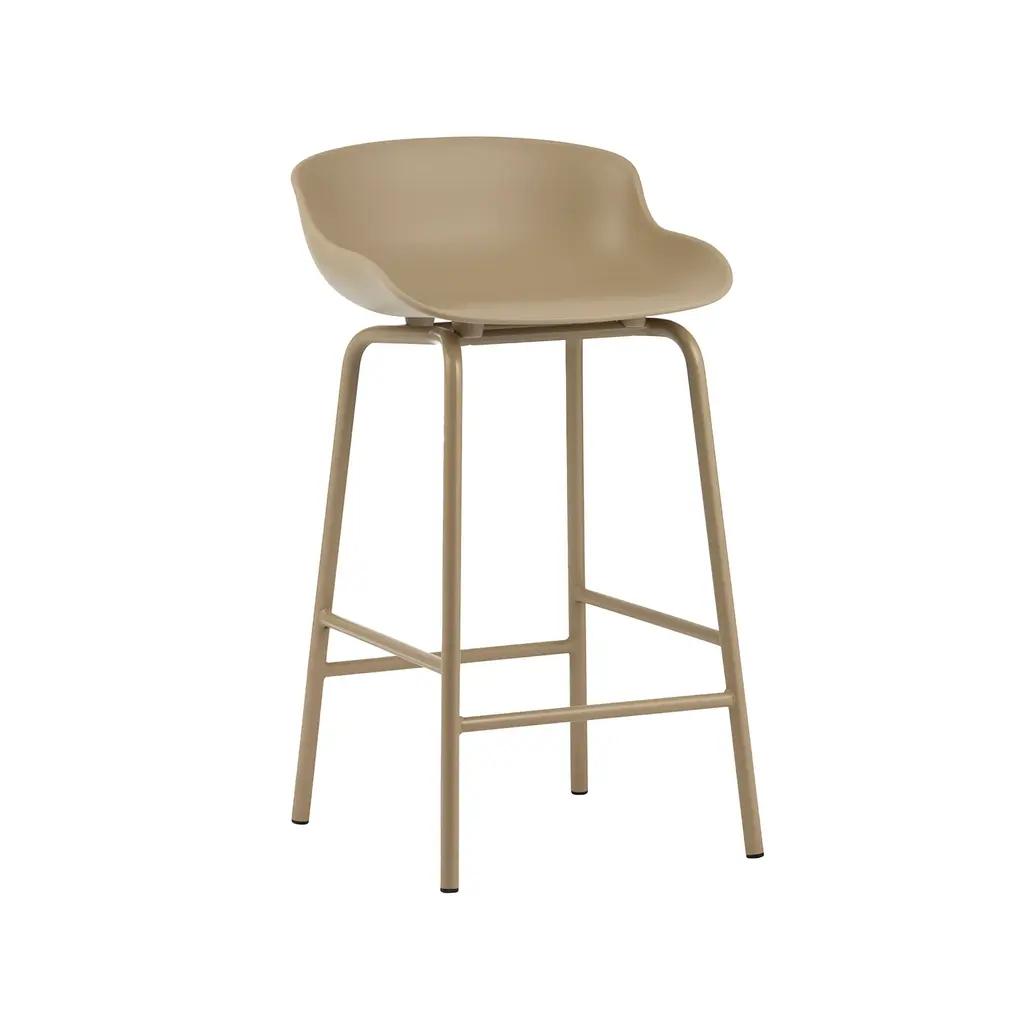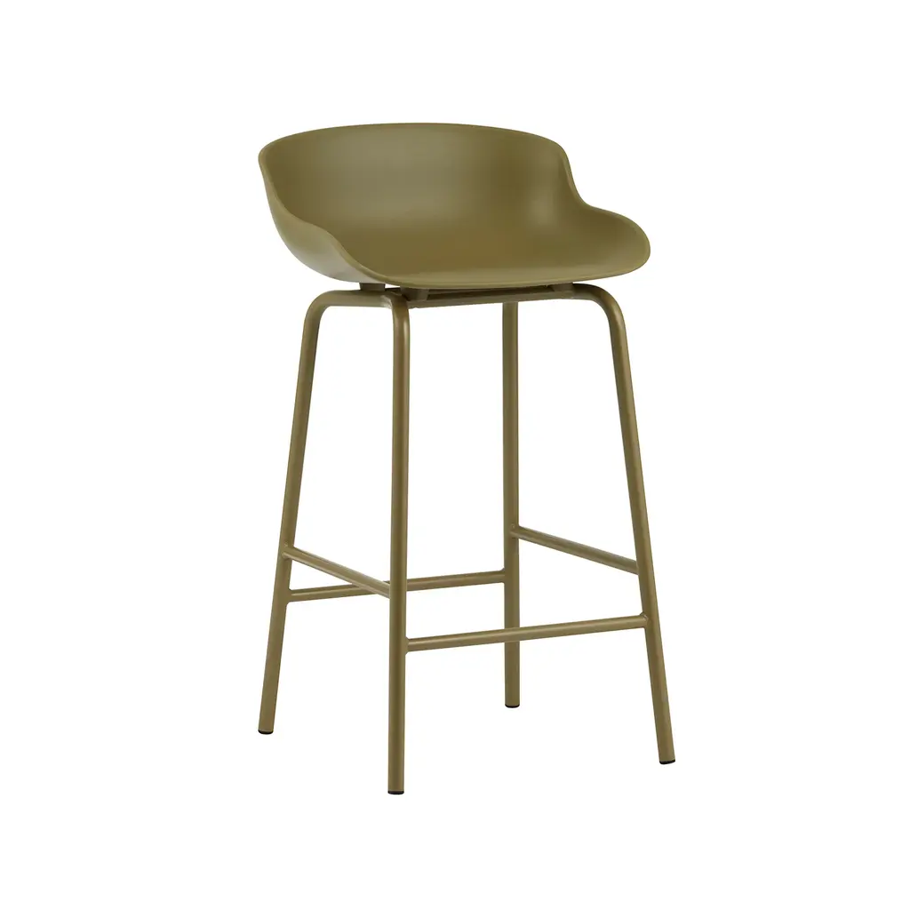 Adding to Hyg's exclusive range, designer Simon Legald offers a high stool with the same sculptural lines and encircling contours of his original cozy molded chair. In either bar or height, the ample curved seat accommodates a range of comfortable positions while the raised edges add a feeling of security. Available in a range of naturalistic hues, the seating has matching powder-coated steel legs with an integreted footrest.