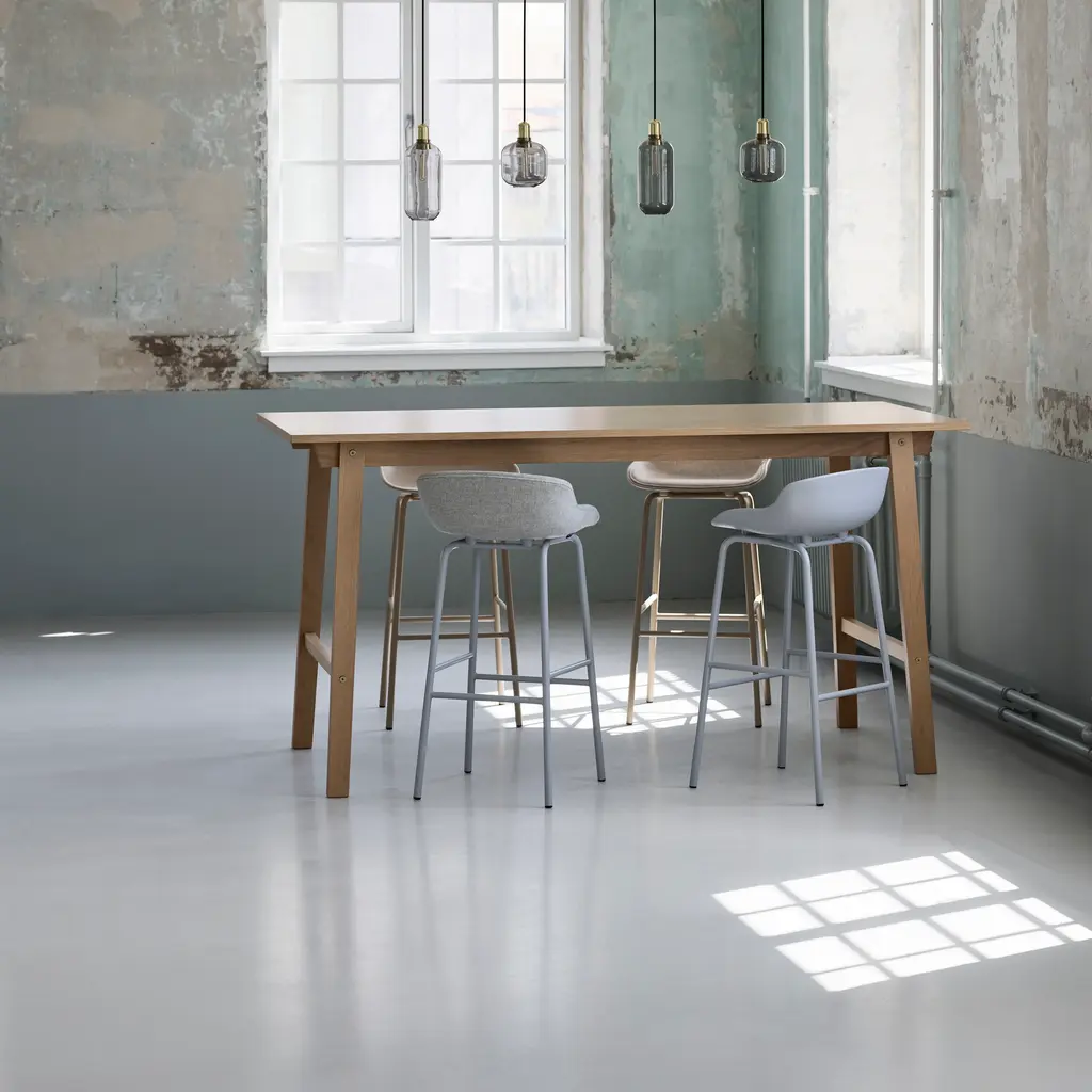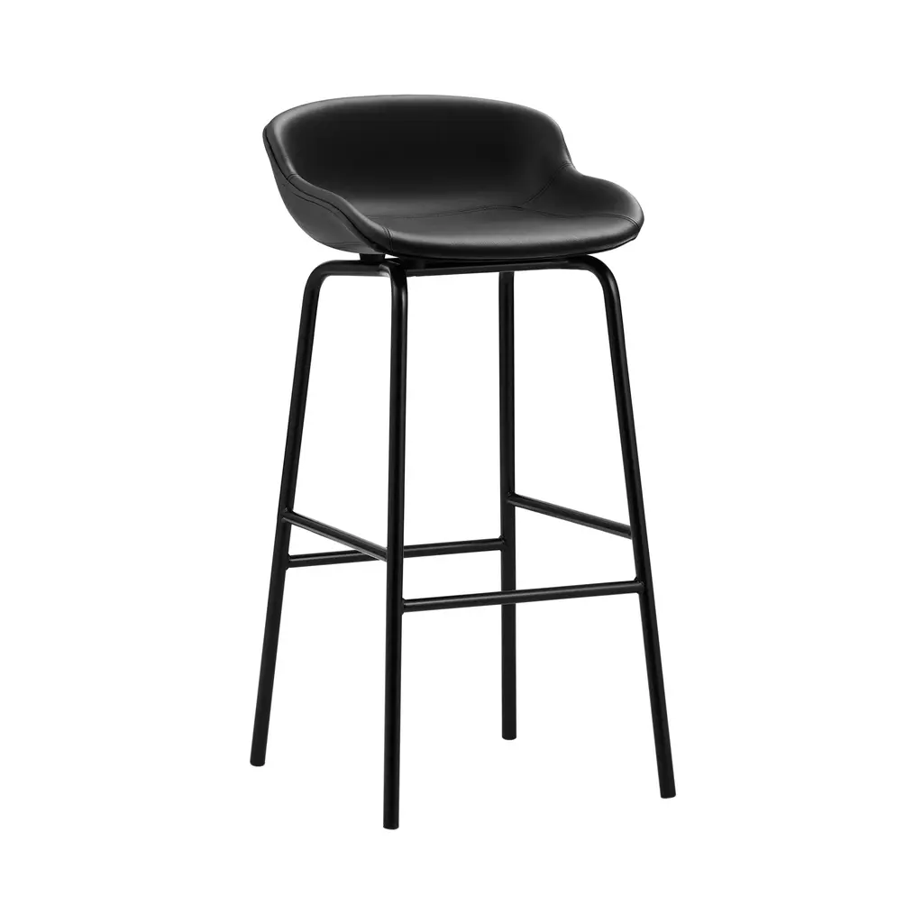 In either bar or counter height, the fully upholstered version adds a custom note of swank to designer Simon Legald's high stool. His Hyg line reflects the legendary Danish notion of, with its emphasis on comfort and contentment—as translated into the seatings embracing contours. With a range of upholstery options in premium textiles or leather, the stool comes with a powder-coated steel base in a choice of highly amenable hues.