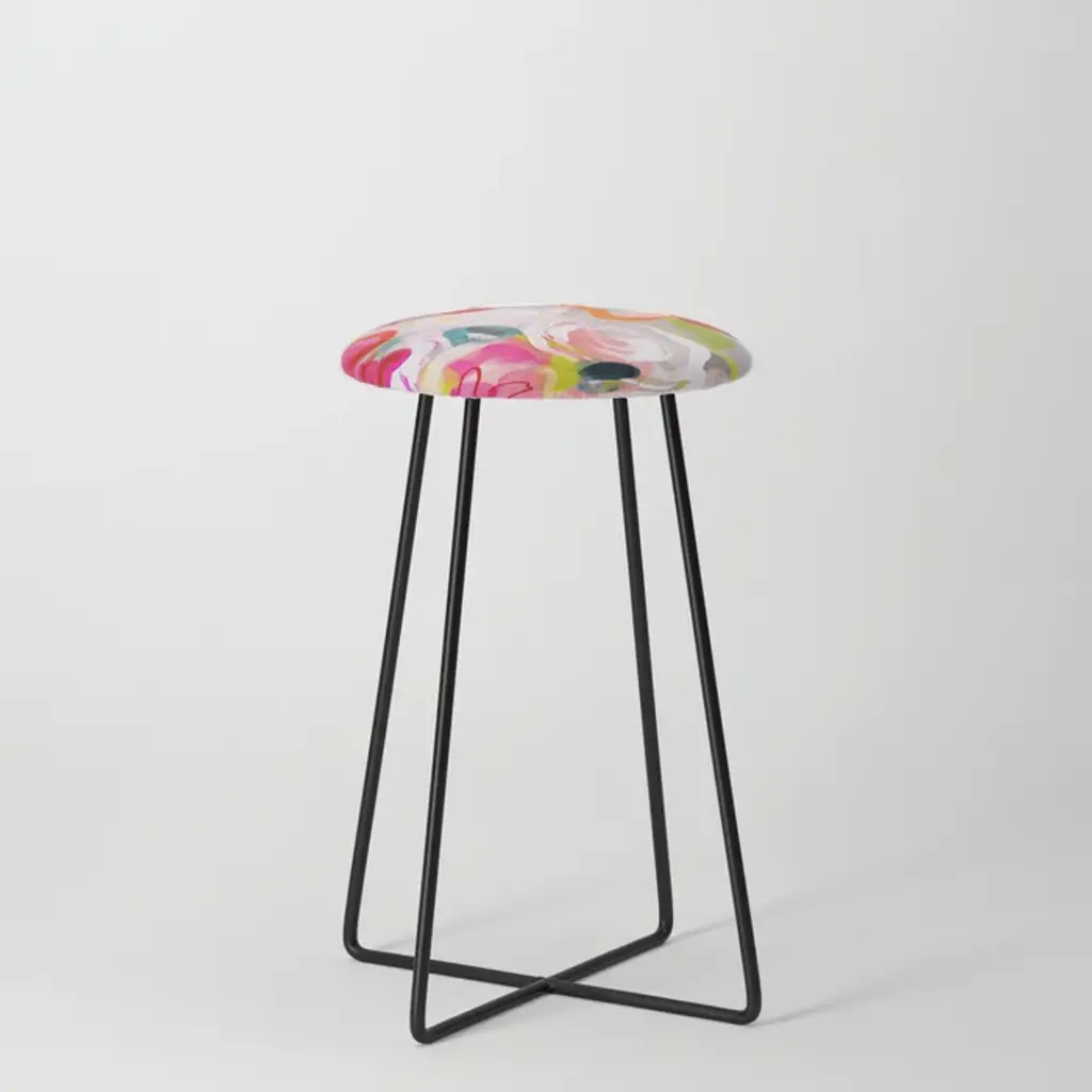 Height Options: Choose between counter (25") and bar (30") heights to suit your needs.Finish: Steel legs available in elegant gold or classic black to complement your decor.Comfort: Cushiony seat wrapped in high-quality vegan leather for a luxurious but durable feel.Sturdy Construction: Supported by durable steel frames for long-lasting use.Bar Stools:15" x 15" x 30" (H)Legs measure 28" highAssembly requiredBar stool legs include foot restCounter Stools:15" x 15" x 25" (H)Legs measure 23" highAssembly requiredNote: Counter stool legs do not include foot restRegular Cleaning: Wipe clean with a soft, damp cloth to remove dust and light spills.For tougher stains, use a mild soap solution and gently blot the area. Avoid using harsh chemicals or abrasive cleaners that may damage the vegan leather.Vegan Leather Care: To maintain the appearance of the vegan leather, apply a leather conditioner specifically designed for faux leather every 3-6 months. Avoid placing stools in direct sunlight to prevent fading and cracking of the vegan leather.Steel Frame Maintenance: Dust the steel frame regularly with a dry cloth. For stubborn marks, use a slightly damp cloth with a mild detergent, then dry thoroughly. To prevent rust, avoid exposing the steel frame to excessive moisture.Preventive Care: Use felt pads under the stool legs to protect your floors and reduce noise. Avoid dragging the stools across the floor to prevent damage to both the stools and your flooring.SHIPPING: Items are made to order and typically ship within 3-4 business days. Click here for more information about delivery options.Furniture sales are final. Click here for more information on returns.