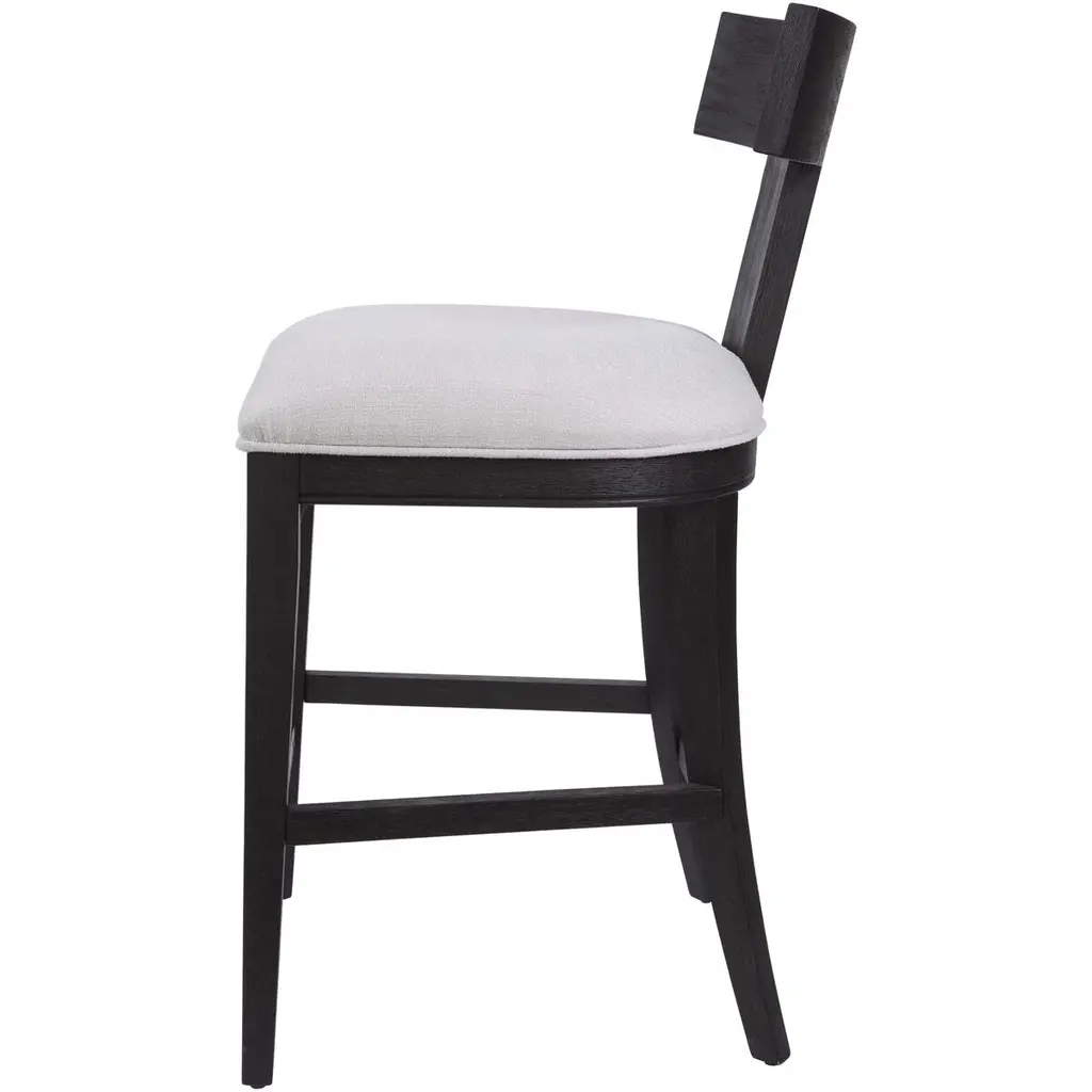 Idris 38 Inch Charcoal Black Stain And White Fabric Counter Stool
