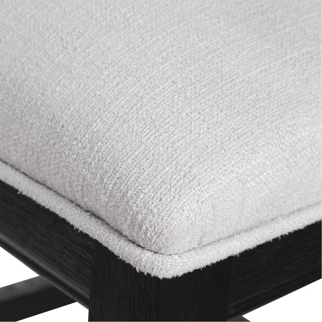 This Modern Take On A Klismos Design Features A Curved Rubber Wood Frame That Has Been Wire Brushed And Rubbed In A Charcoal Black Stain, Paired With A White Slubbed Performance Fabric Cushion. Seat Height Is 26".