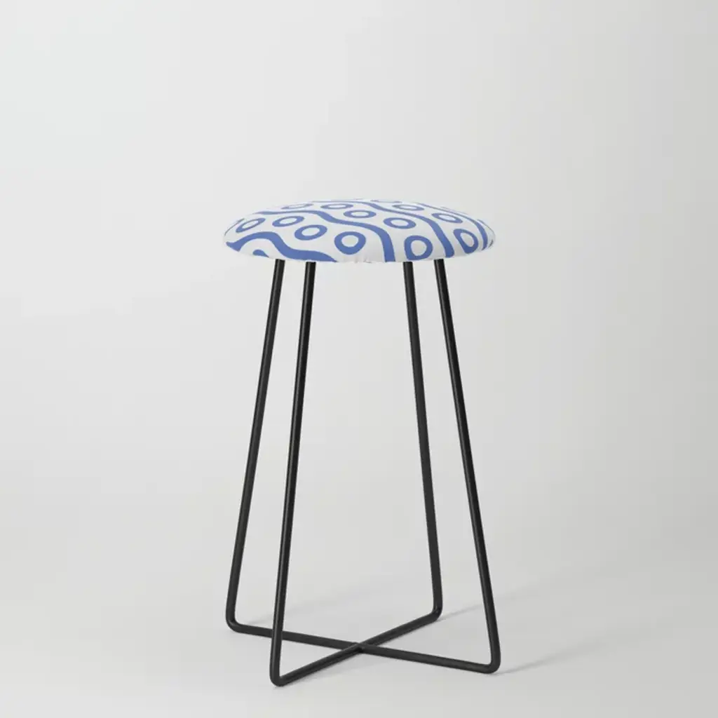 Indigo Abstract Brush Strokes | No. 6 Stool