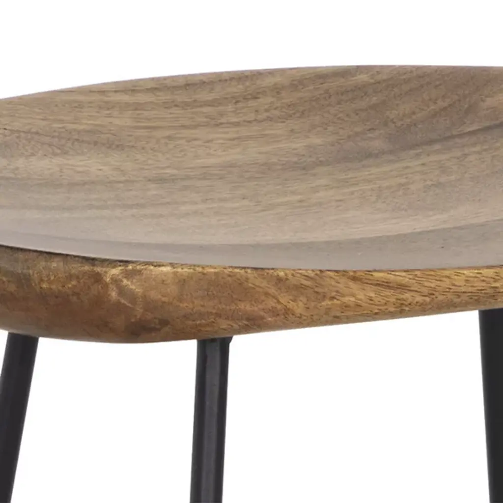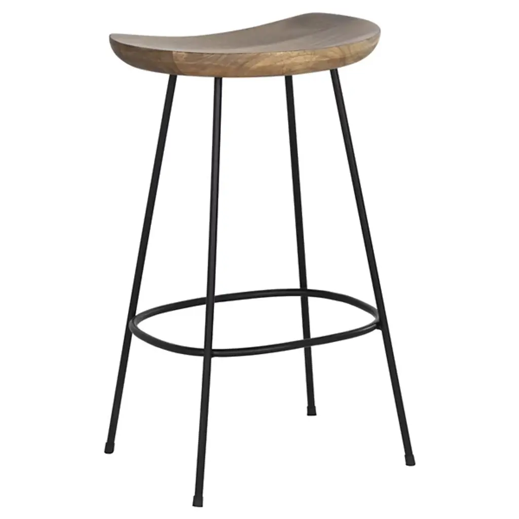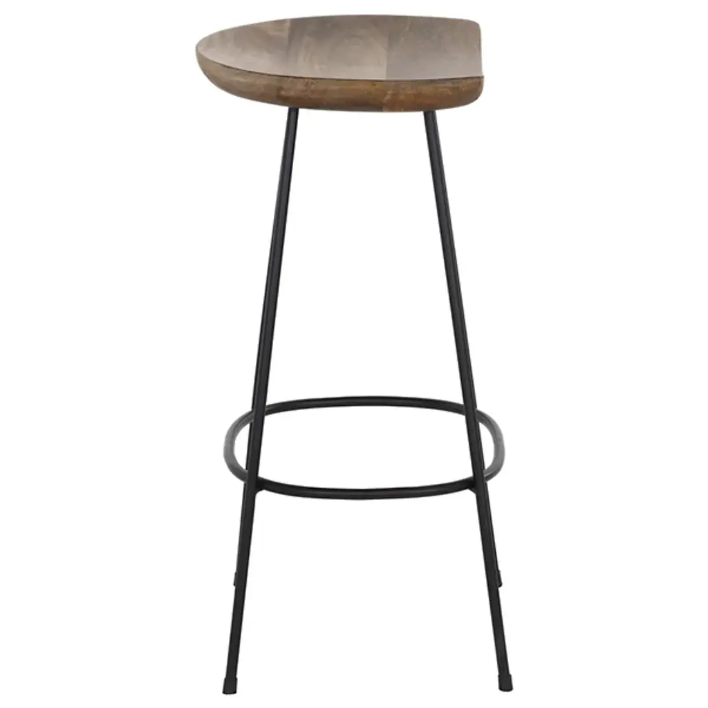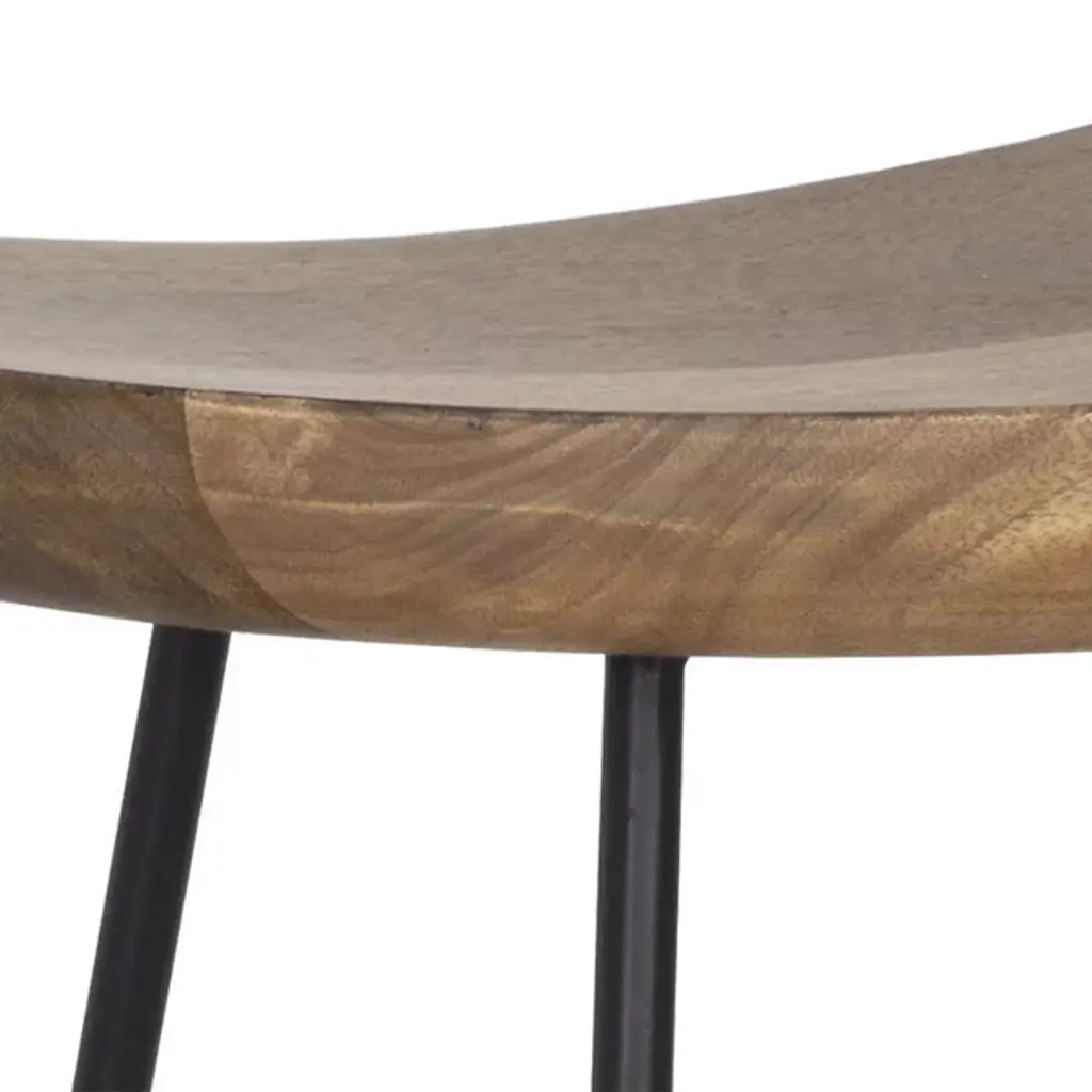 The Indra Backless Counter Stool from Sunpan offers its surroundings organic beauty and coastal charm forged through artisanal craftsmanship. Handmade in India, each piece presents a natural mango wood seat with unique grain patterns, knots, and subtle variations that tell its own story. The minimalist black iron frame provides an open foundation for this understated masterpiece that keeps the wood front and center. This celebration of natural imperfections and skilled artistry brings authentic character to any counter space.