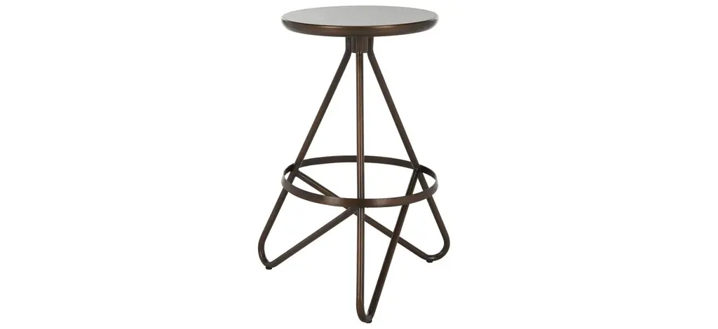 Inspired by retro industrial style, this Ingrid Counter Stool is the life of the party. Crafted of iron in an antique copper finish, its bold sculptural foundation adds vintage, whimsical style to any bar, kitchen island, or entertaining area.