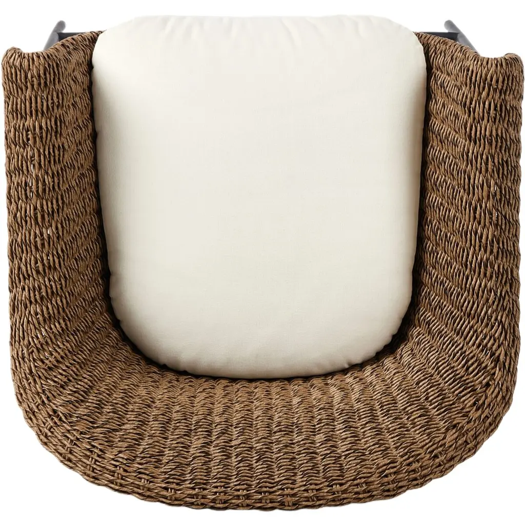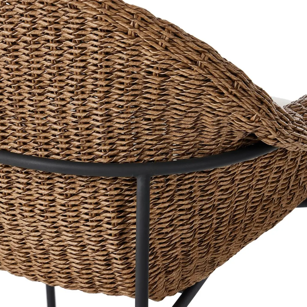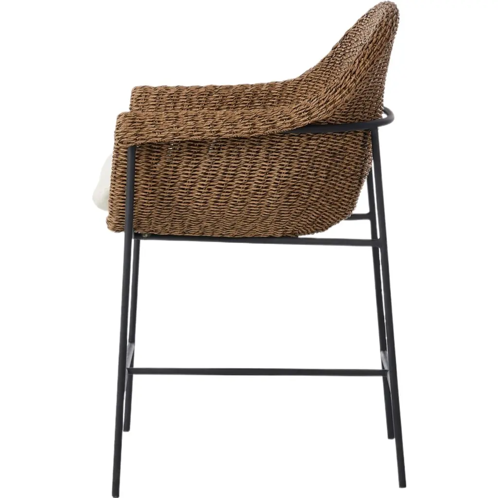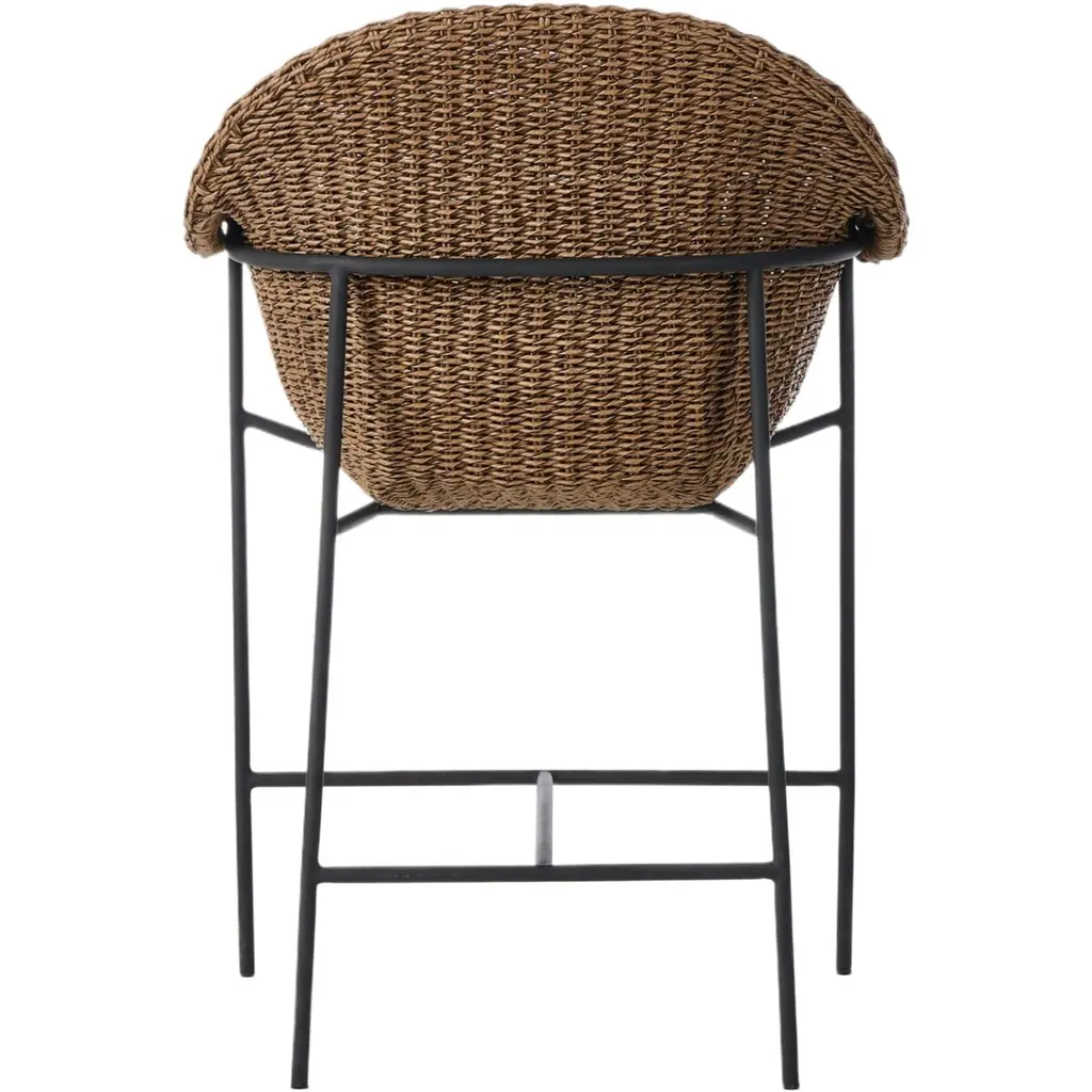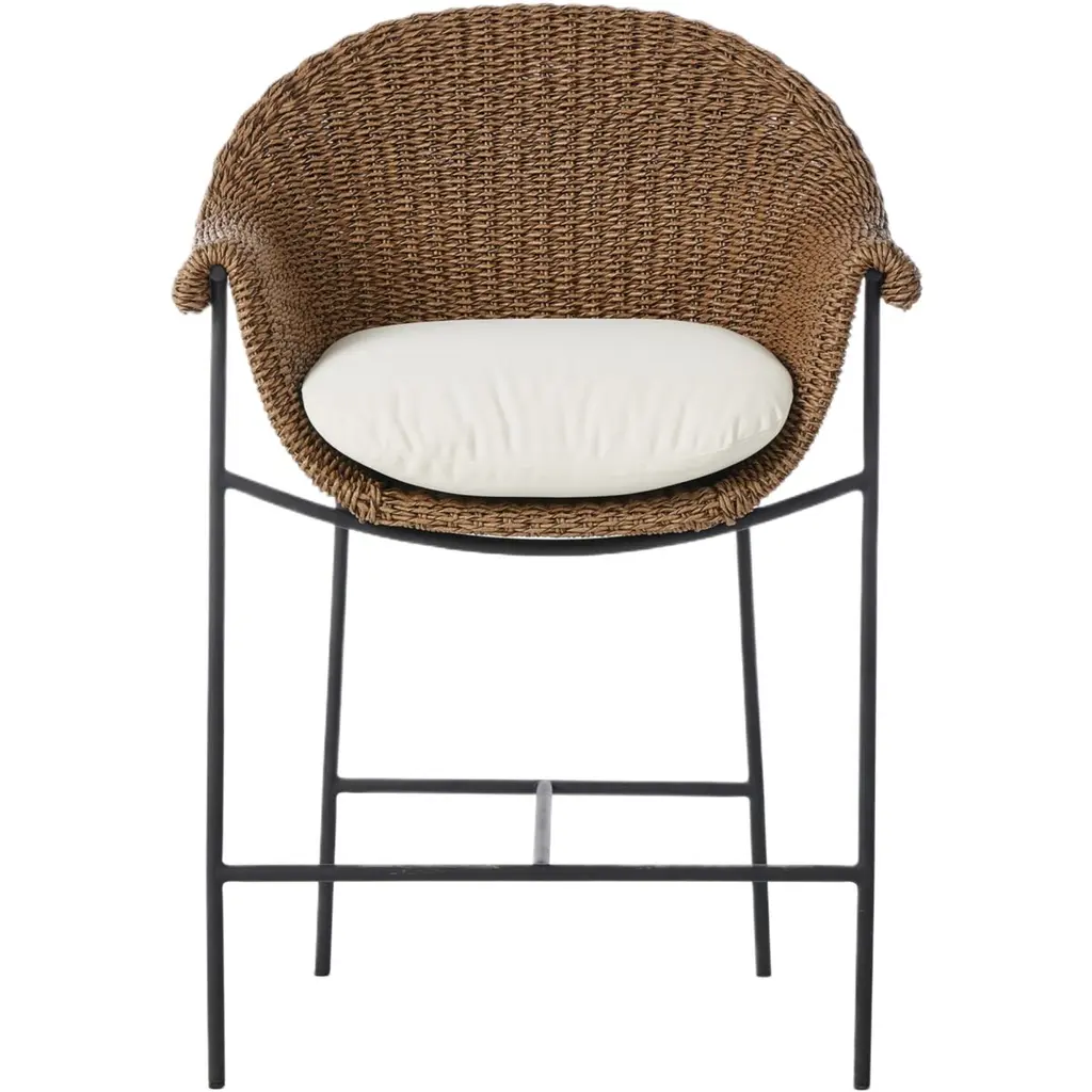 With a curvy silhouette and classic rolled arms, the Isidore Outdoor Counter Stool features a woven frame that brings modern sensibility to a vintage-inspired design. Its airy iron cradle base offers a beautiful balance of scale, while the fully upholstered cushion ensures a comfortable sit. This stool is perfect for outdoor settings, but should be covered or stored indoors during inclement weather and when not in use.