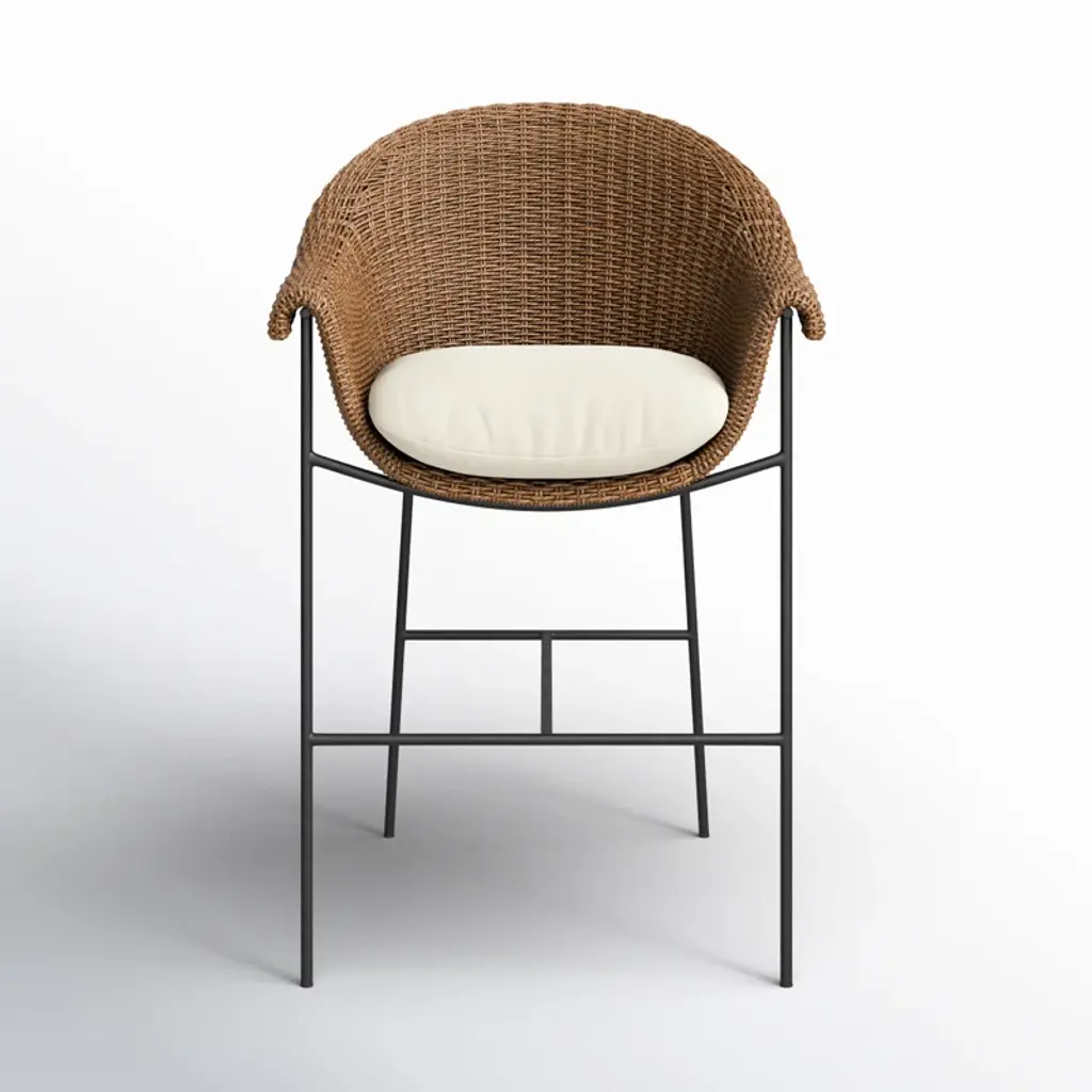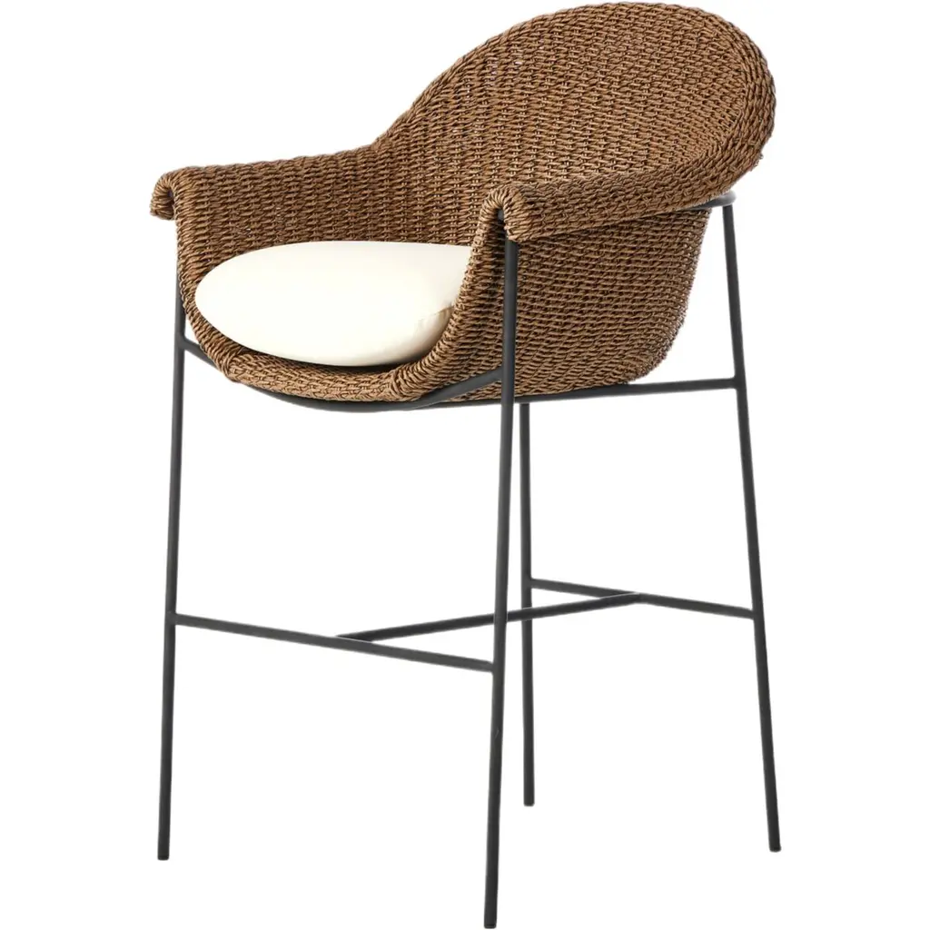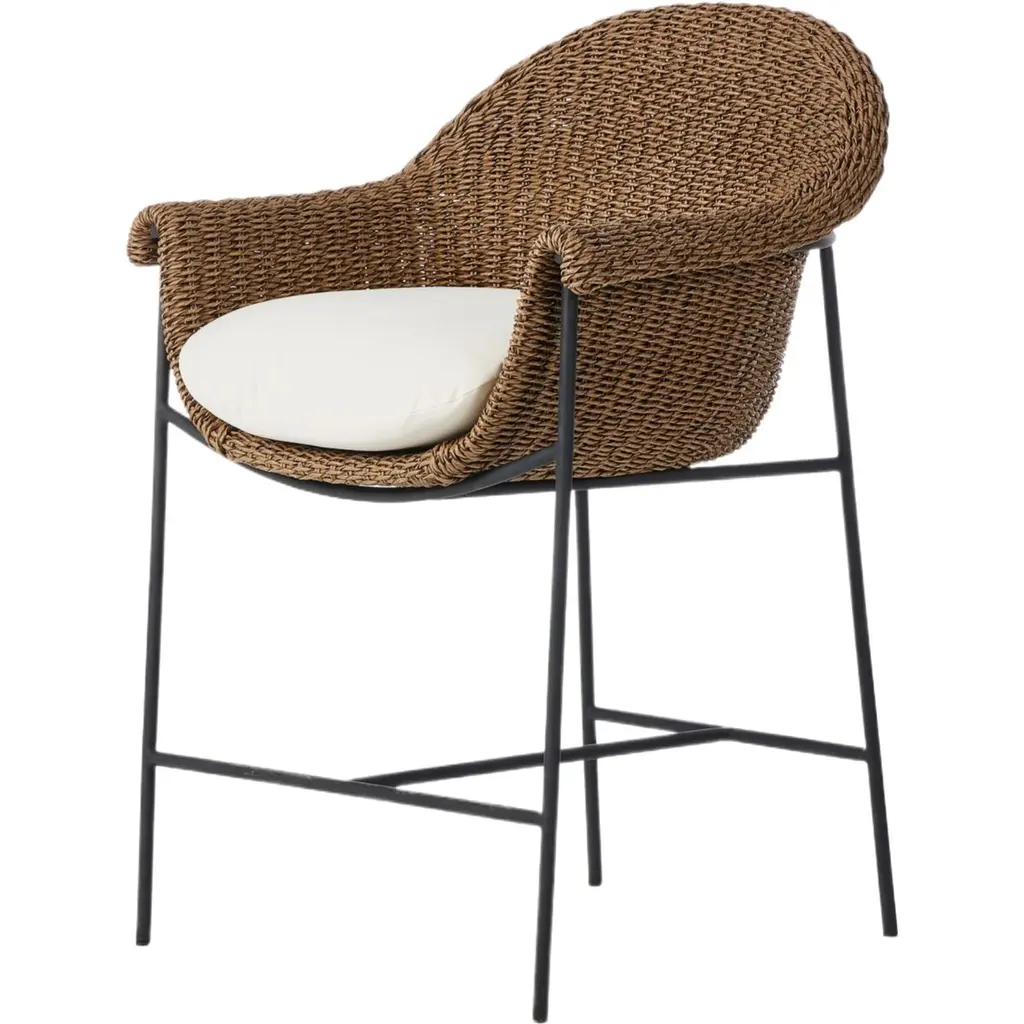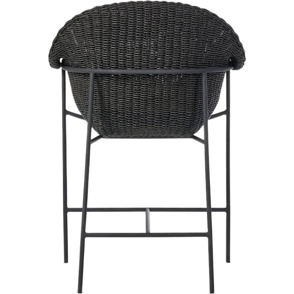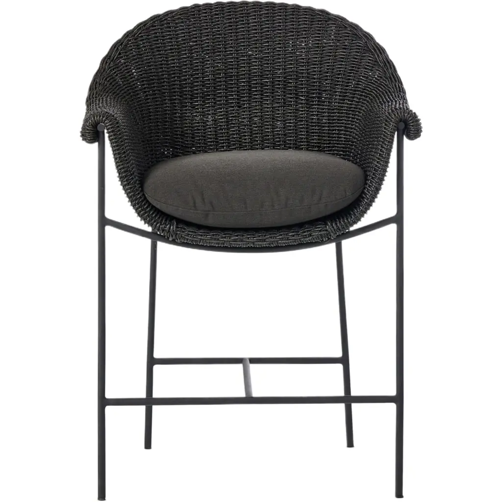 With a curvy silhouette and classic rolled arms, the Isidore Outdoor Counter Stool features a woven frame that brings modern sensibility to a vintage-inspired design. Its airy iron cradle base offers a beautiful balance of scale, while the fully upholstered cushion ensures a comfortable sit. This stool is perfect for outdoor settings, but should be covered or stored indoors during inclement weather and when not in use.
