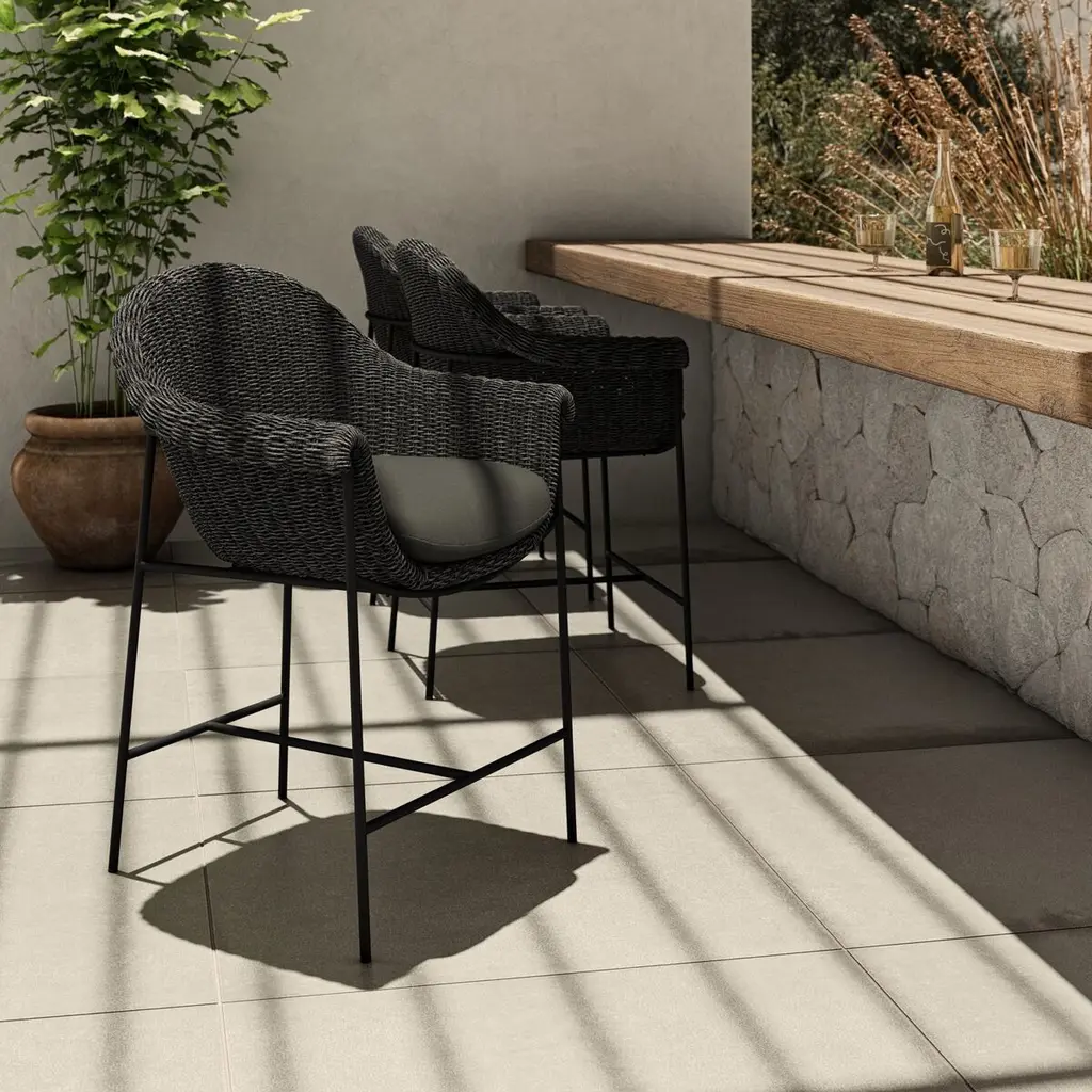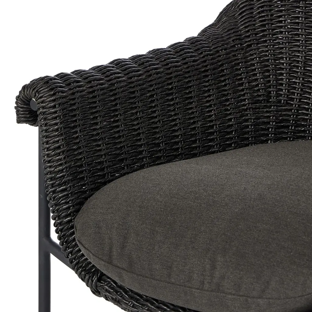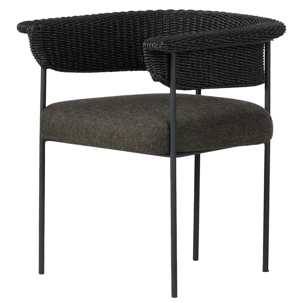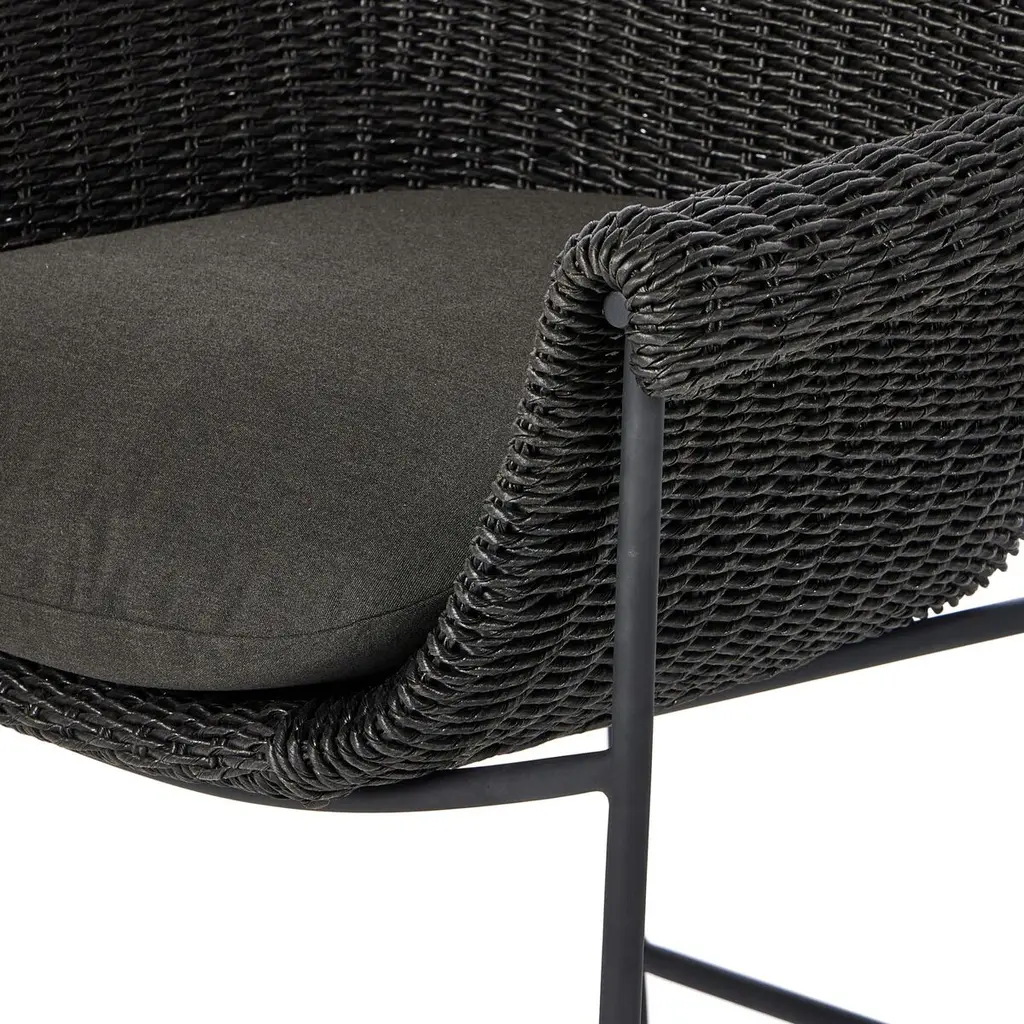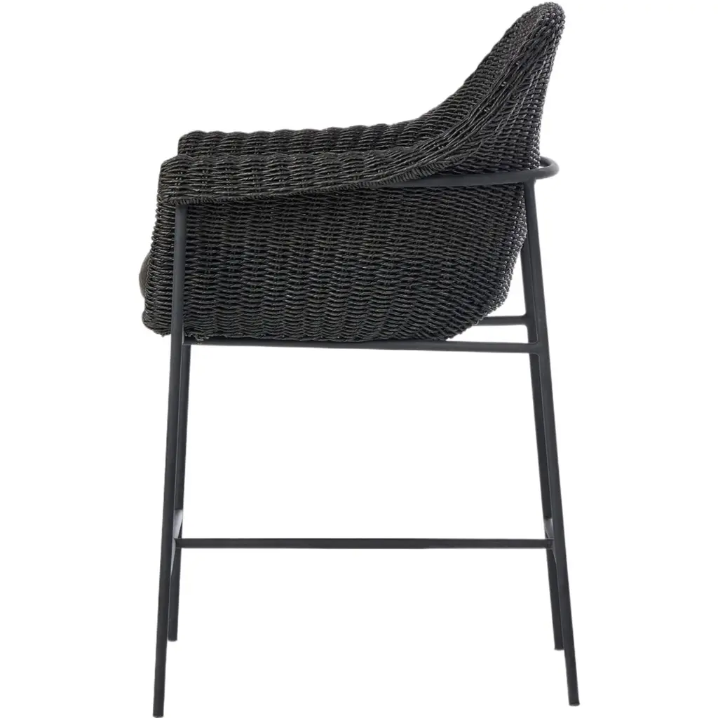 With a curvy silhouette and classic rolled arms, the Isidore Outdoor Counter Stool features a woven frame that brings modern sensibility to a vintage-inspired design. Its airy iron cradle base offers a beautiful balance of scale, while the fully upholstered cushion ensures a comfortable sit. This stool is perfect for outdoor settings, but should be covered or stored indoors during inclement weather and when not in use.