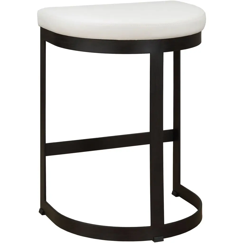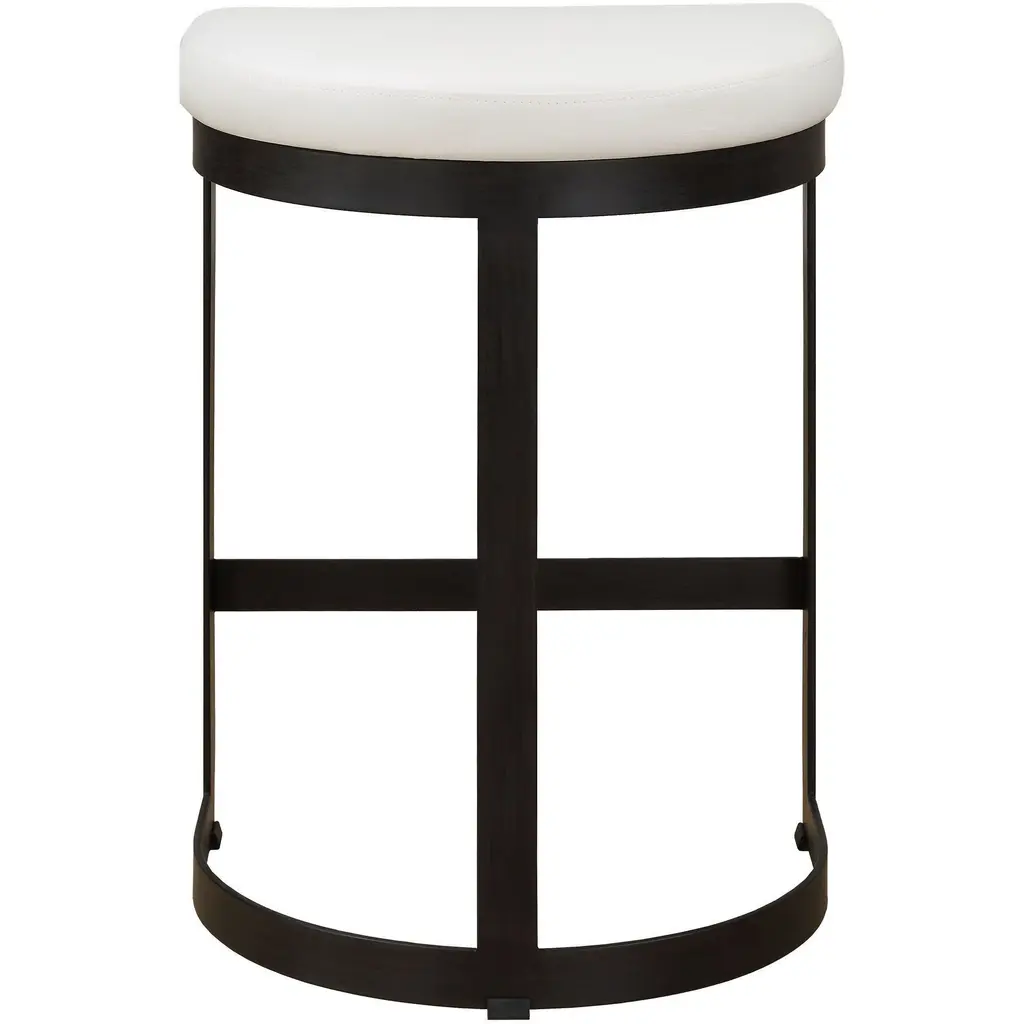 Simplistic But Sturdy, This Statement Counter Stool Features A Thick Hand Forged Iron Base Finished In Matte Black. Plush Seat Is Tailored In A White Pebbled Faux Leather. Seat Height Is 26".