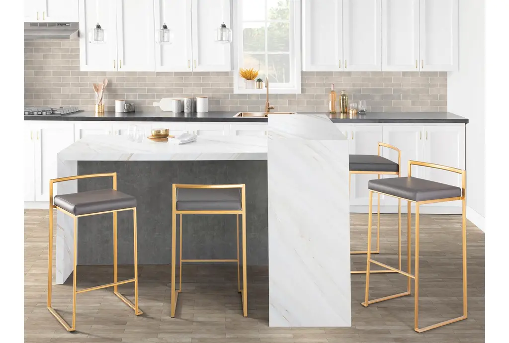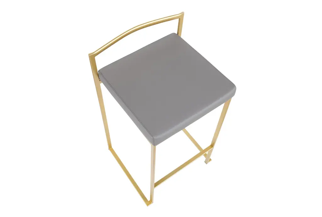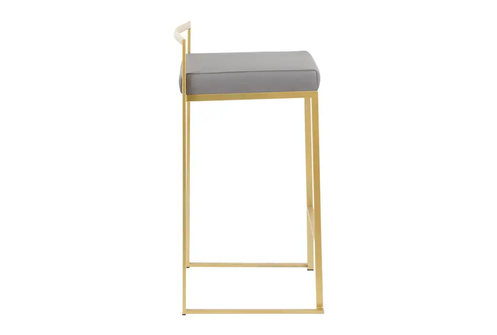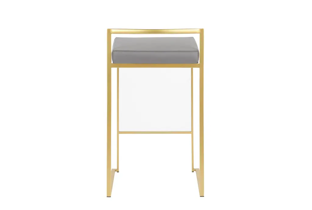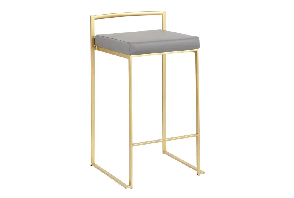 The Iyana Camel Faux Leather Metal Low Back Counter Height Stool Set of 2 brings a modern touch to your dining or kitchen space. Featuring a sleek grey faux leather seat and a sturdy metal frame, these stools are both stylish and durable. The low back and armless design offer a comfortable seating experience, perfect for any contemporary setting.
