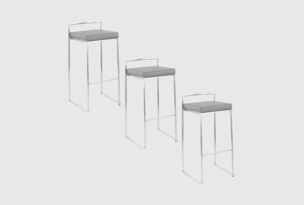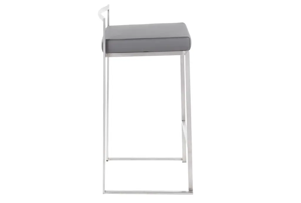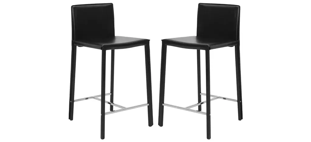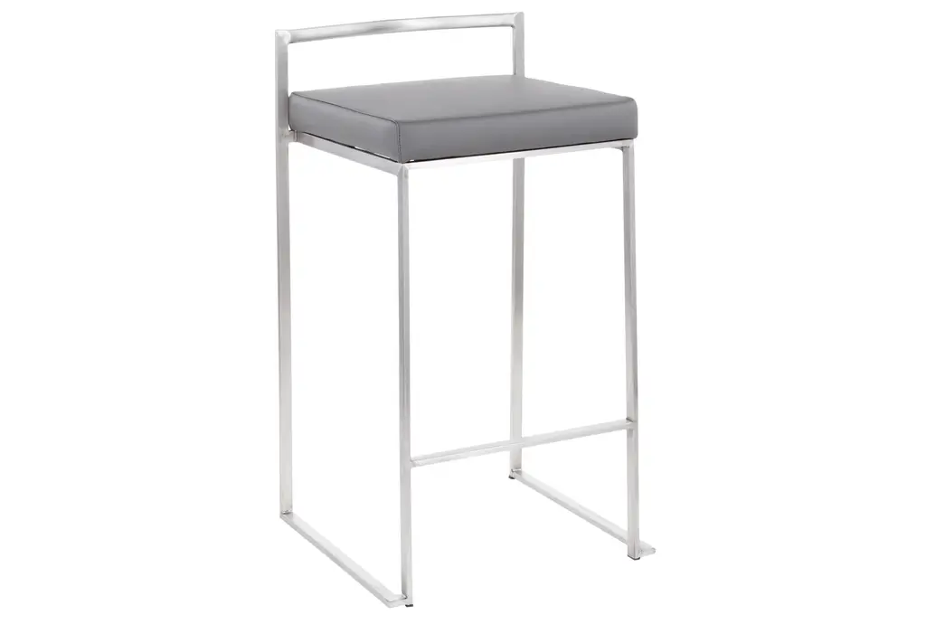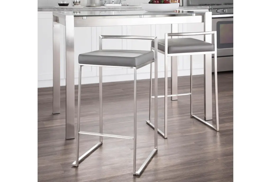 Enhance your dining and kitchen areas with the Iyana Camel Faux Leather Metal Low Back Counter Height Stool Set. These stools feature a low back design and are upholstered in grey faux leather, providing a modern and contemporary touch to any space.