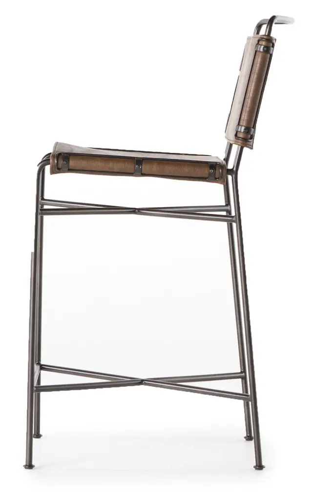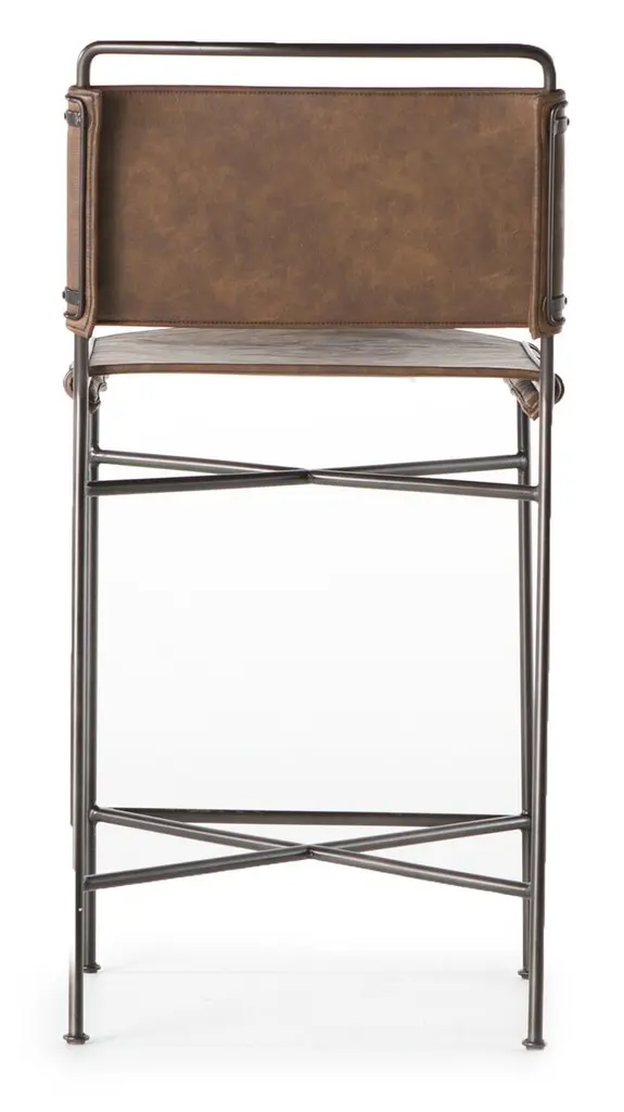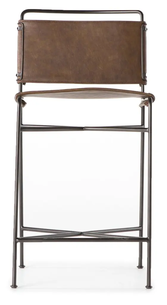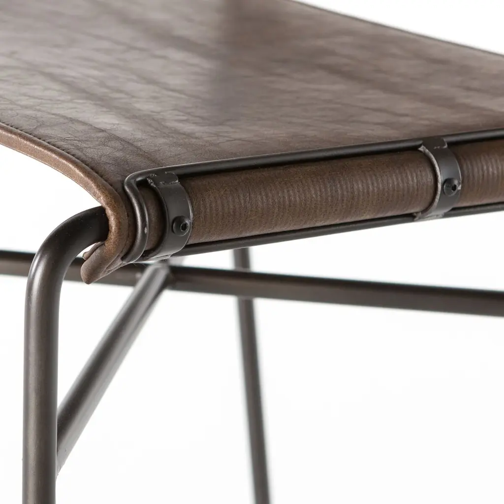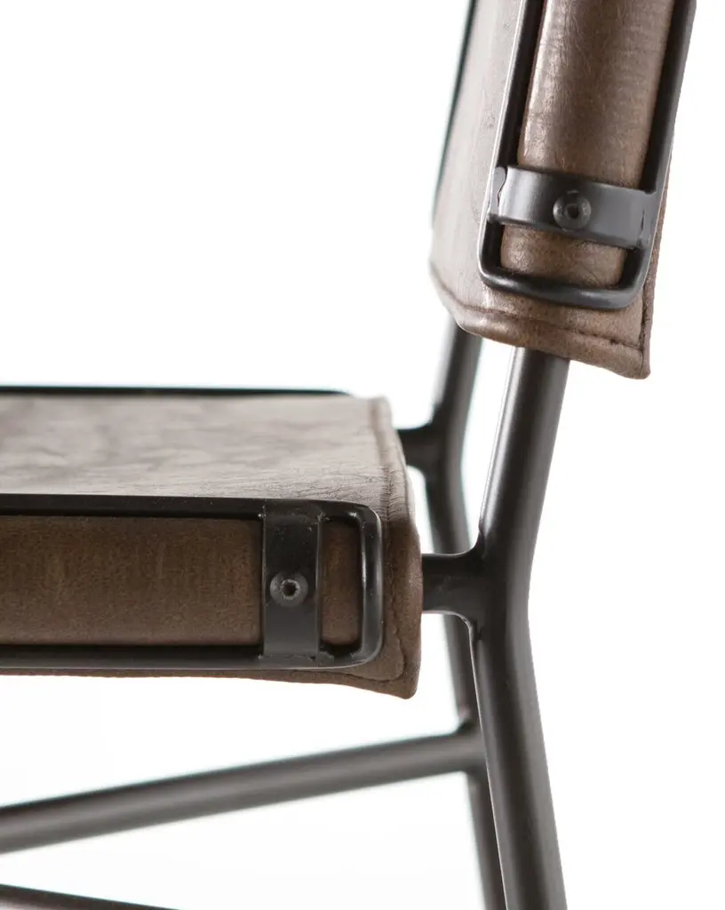 Slim lines and mixed materials combine for ample comfort. Architecturally inspired steel tubing is graced by simply contoured distressed brown seating.