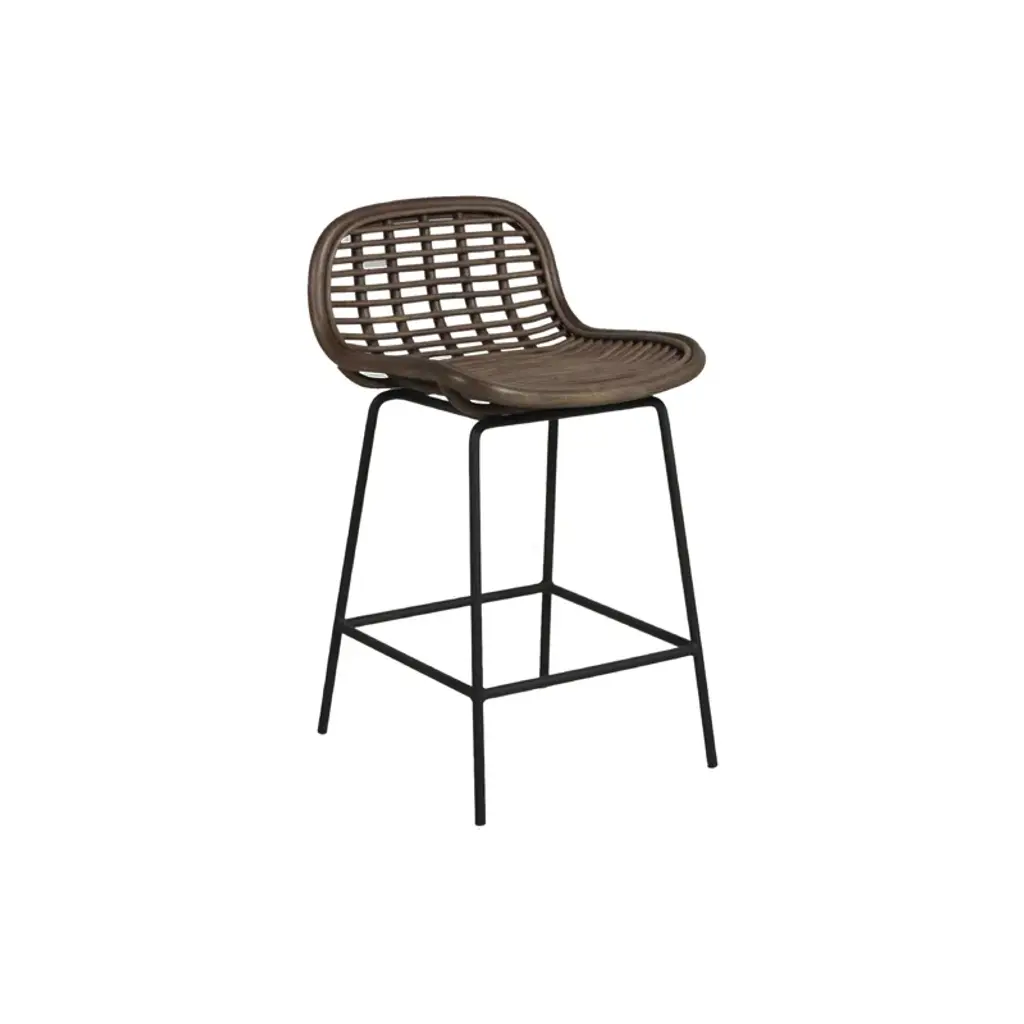 A sleek combination of metal and natural rattan unites to form the low back profile of the Jake Bar & Counter Stool. A hand-formed bucket seat is shaped from natural rattan and finished in matte gray selection. Rattan is a natural material. Differences in color, texture, and pattern should be expected and celebrated.