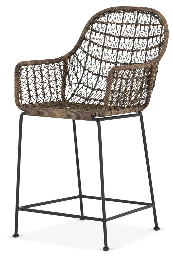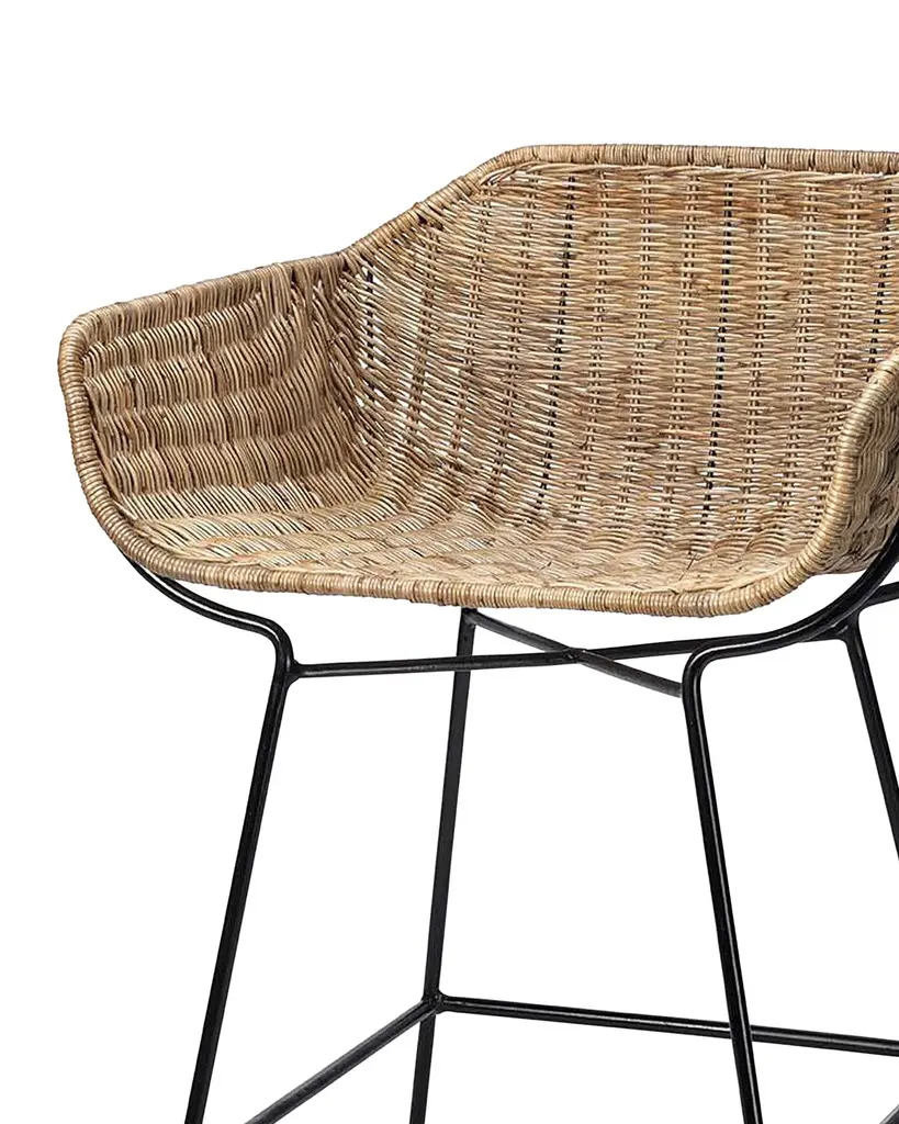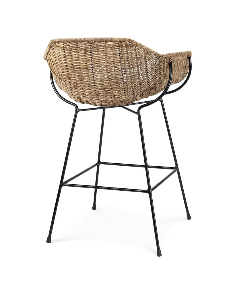 Jamie Young Nusa Counter Stool In Natural Rattan & Black Steel