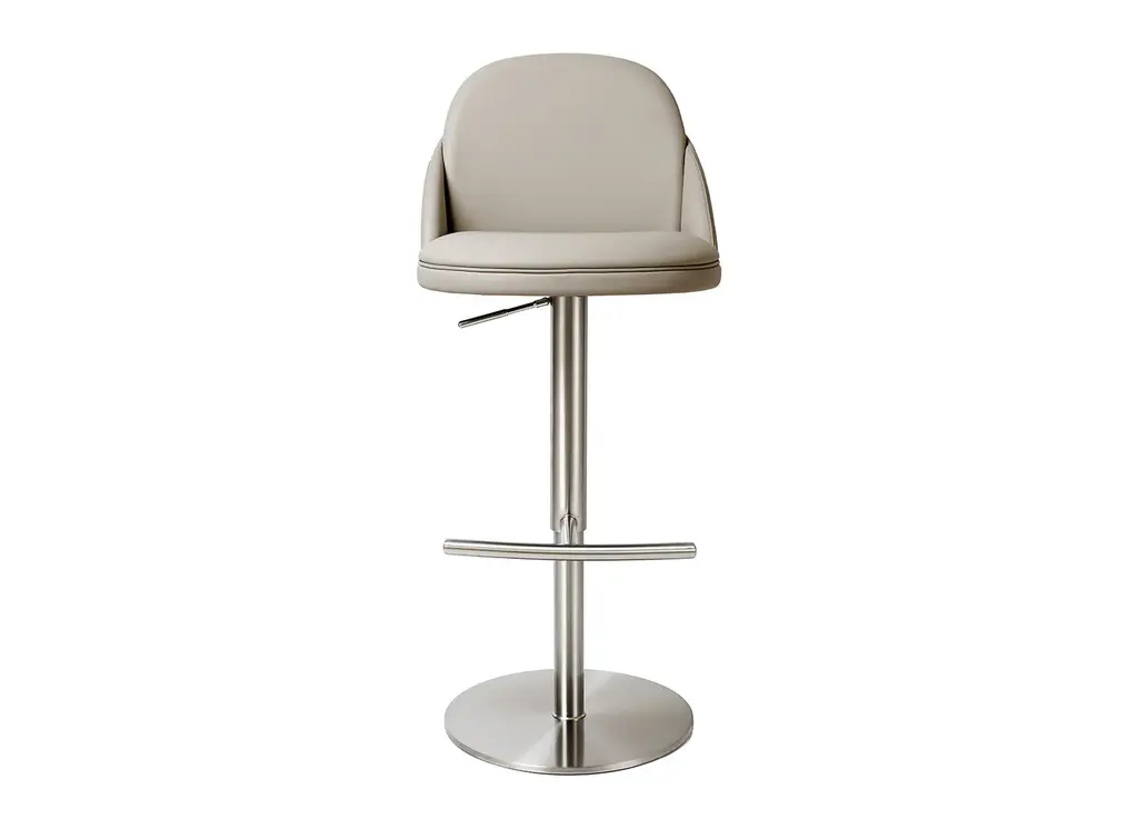 JANINGE Bar stool - gray 29 7/8 ". You sit comfortably thanks to the scooped seat. Easy to adjust in heights using one hand. With footrest for relaxed sitting posture. A special surface treatment makes the seat extra scratch resistant. Suitable for bar heights between 35⅜" and 43¼".