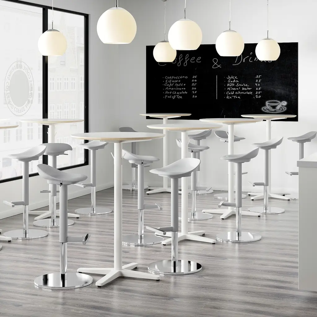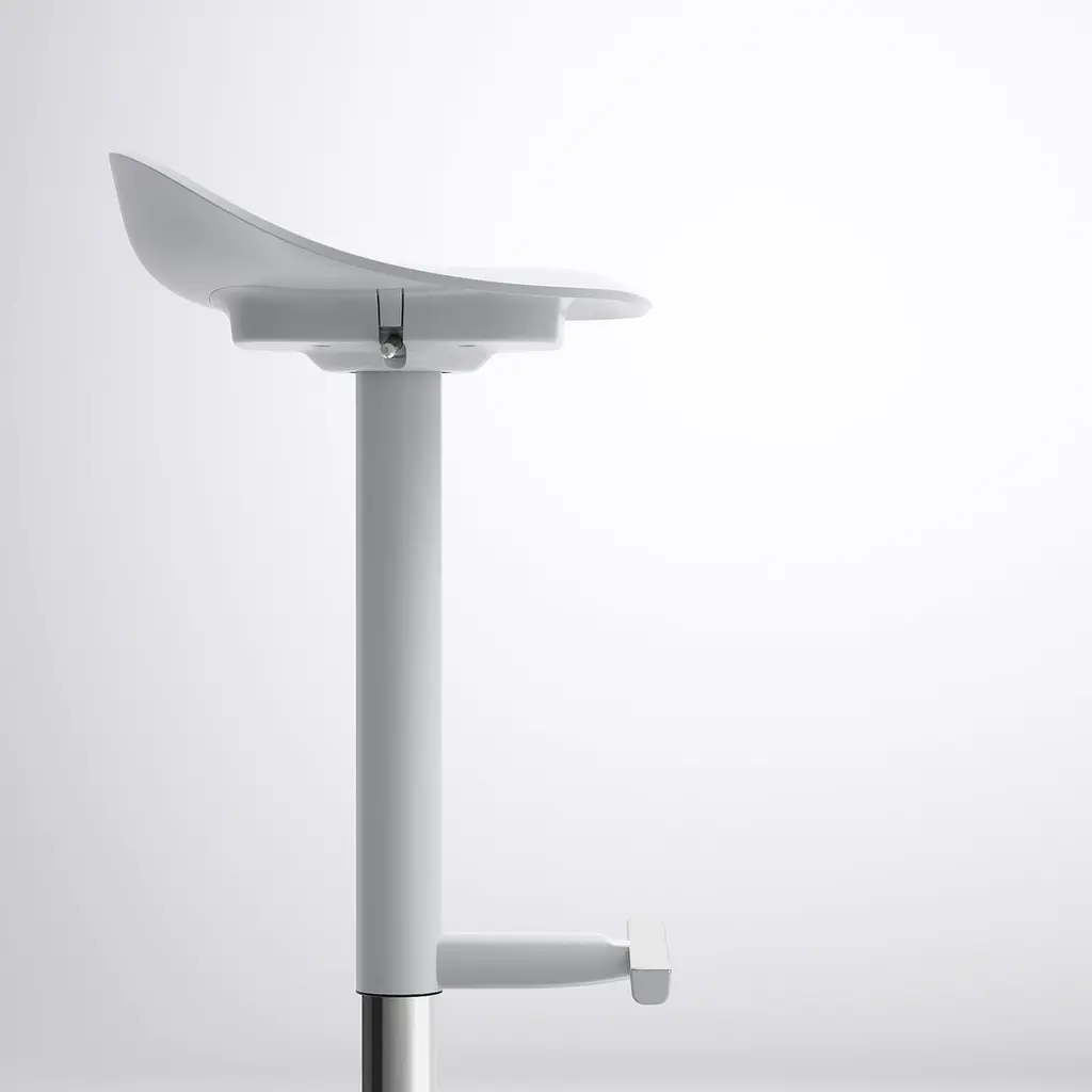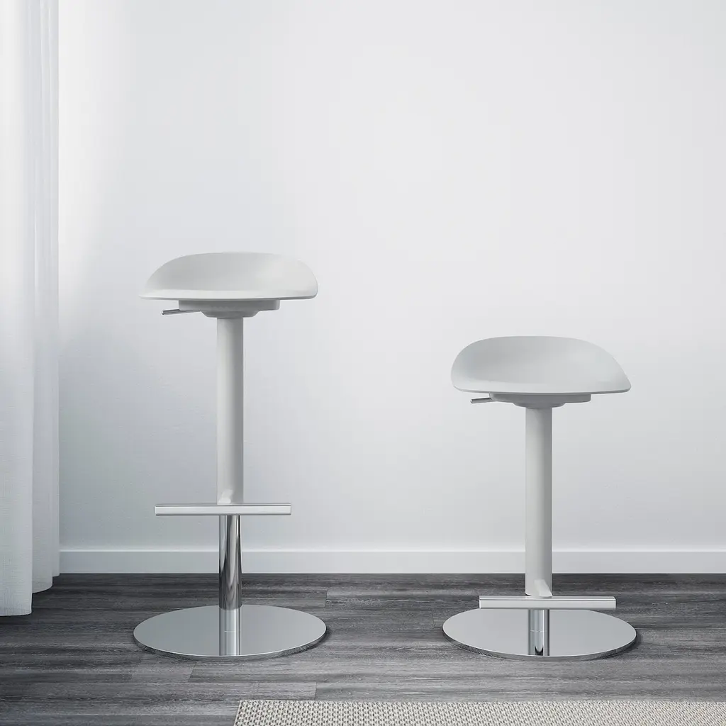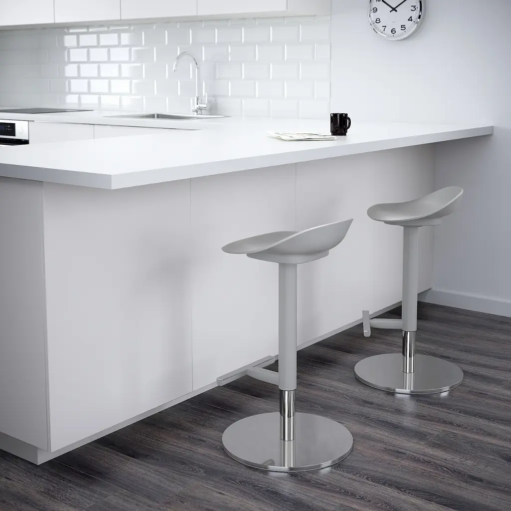 JANINGE Bar stool - gray 29 7/8 ". You sit comfortably thanks to the scooped seat. Easy to adjust in heights using one hand. With footrest for relaxed sitting posture. A special surface treatment makes the seat extra scratch resistant. Suitable for bar heights between 35⅜" and 43¼".