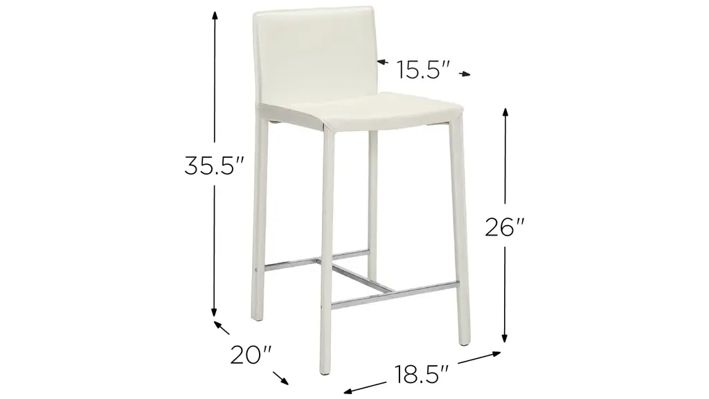 Choose the 24 Jason counter stool for clean, contemporary seating at your kitchen counter or family room bar. With minimalist lines, stainless steel foot rails and an iron frame completely upholstered in crisp white bonded leather, Jason will keep its good looks for years of active family service.