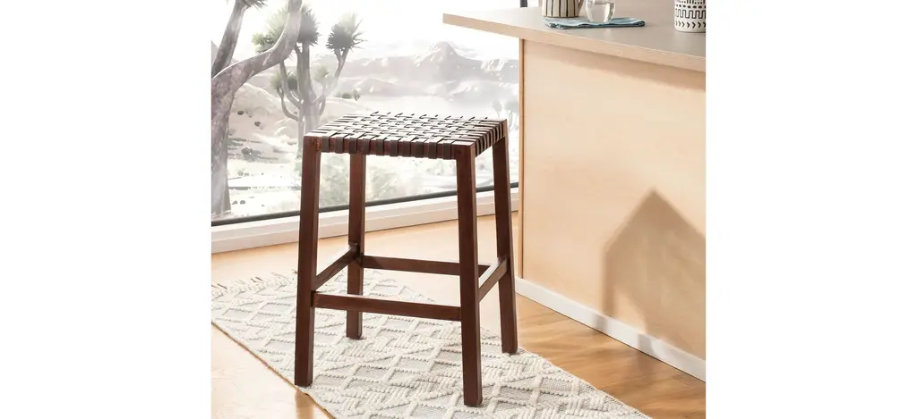 For those who want casual cool ambiance in kitchen or dining room d_cor, the Jaxon Counter Stool is the high style answer. Jaxon is crafted of smooth sungkai in rich dark brown that perfectly supports a matching seat of brown leather bands.