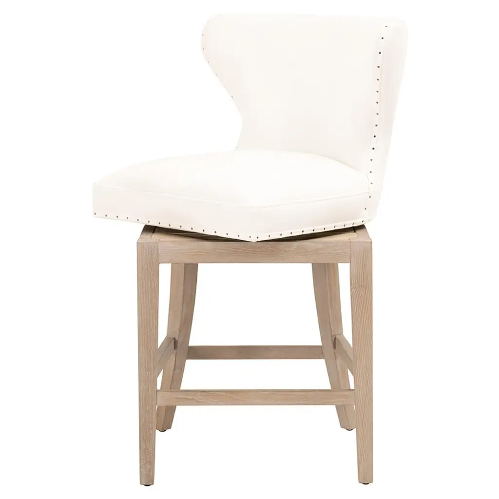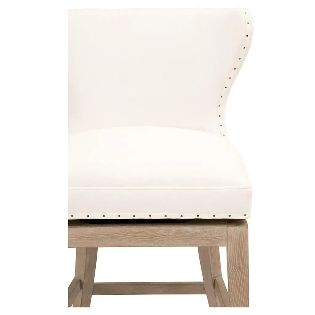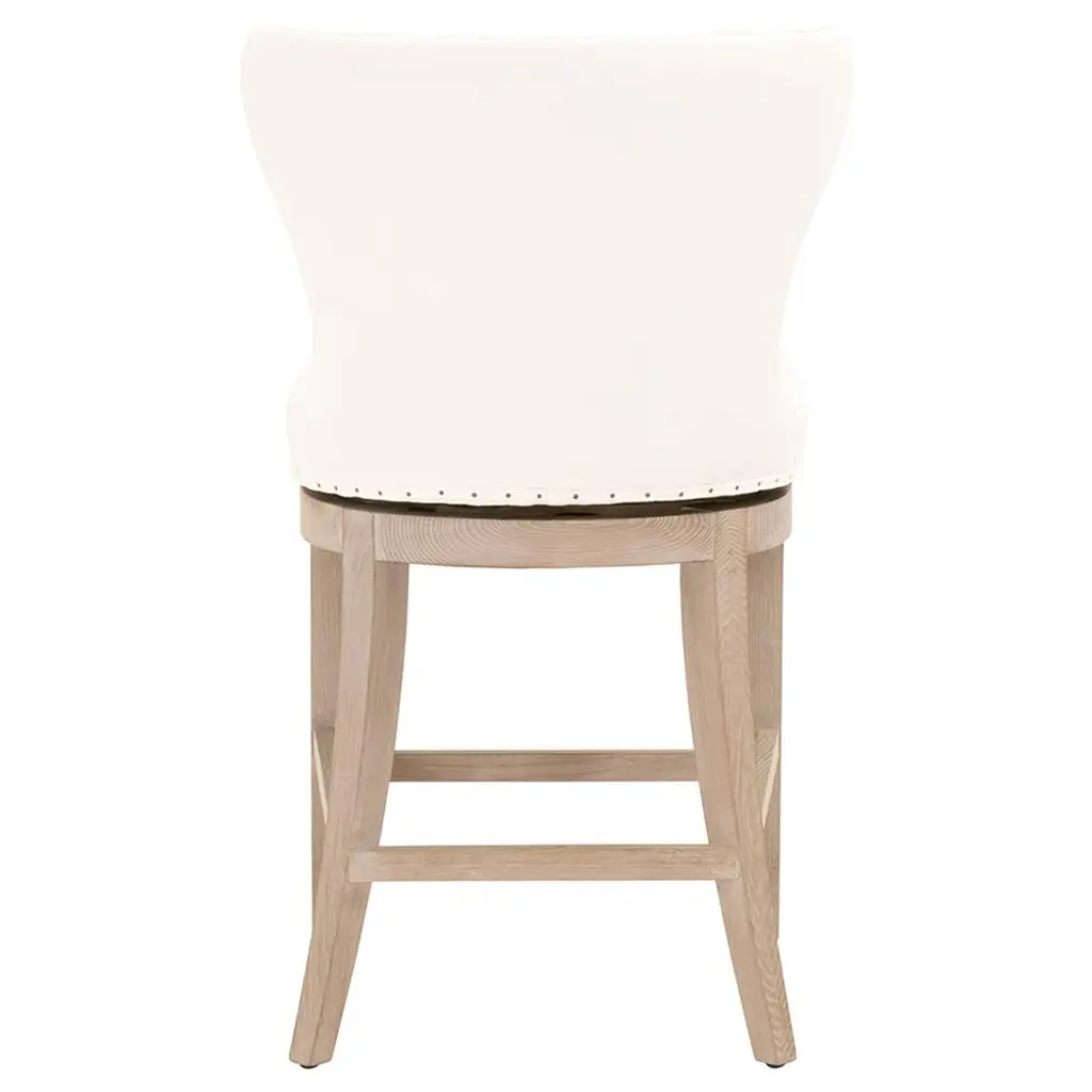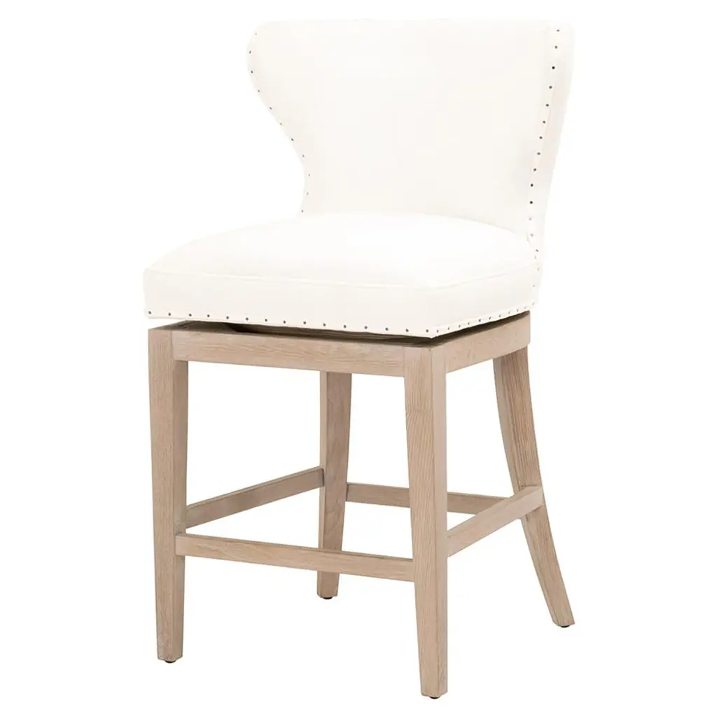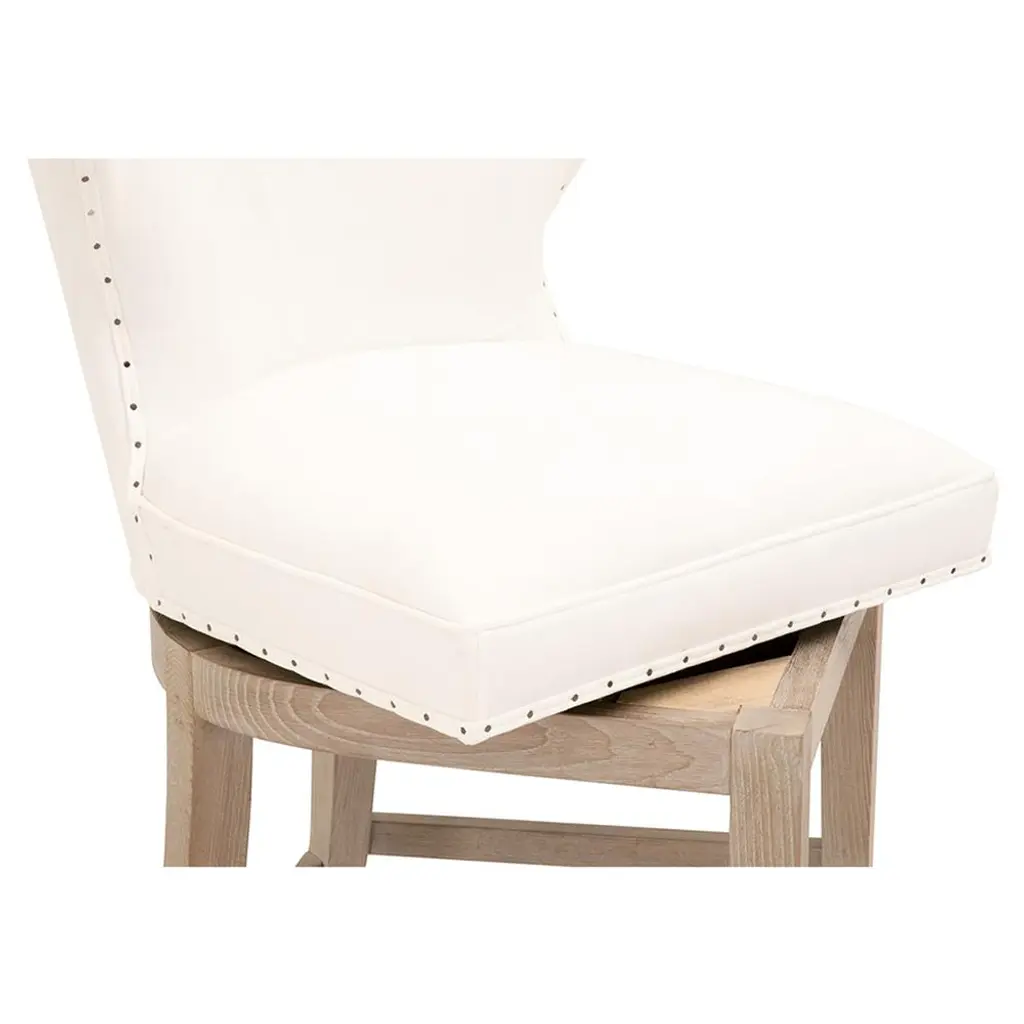 Jen French White Performance Solid Wood Base Nailhead Trim Swivel Counter Stool