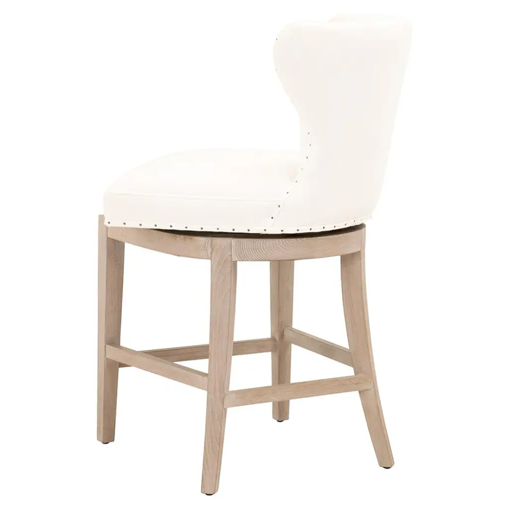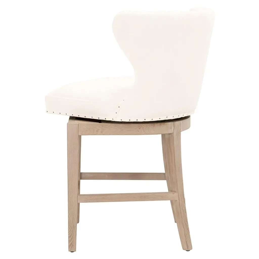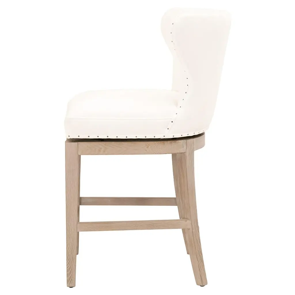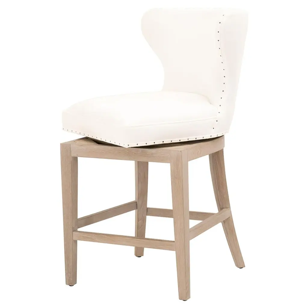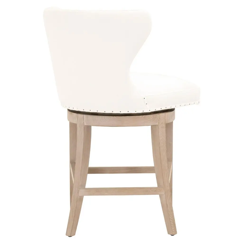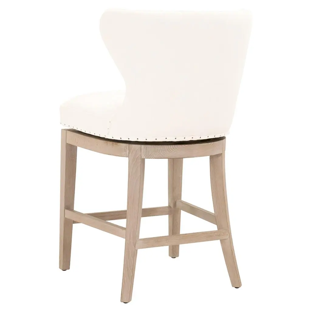 Jen French White Performance Solid Wood Base Nailhead Trim Swivel Counter Stool