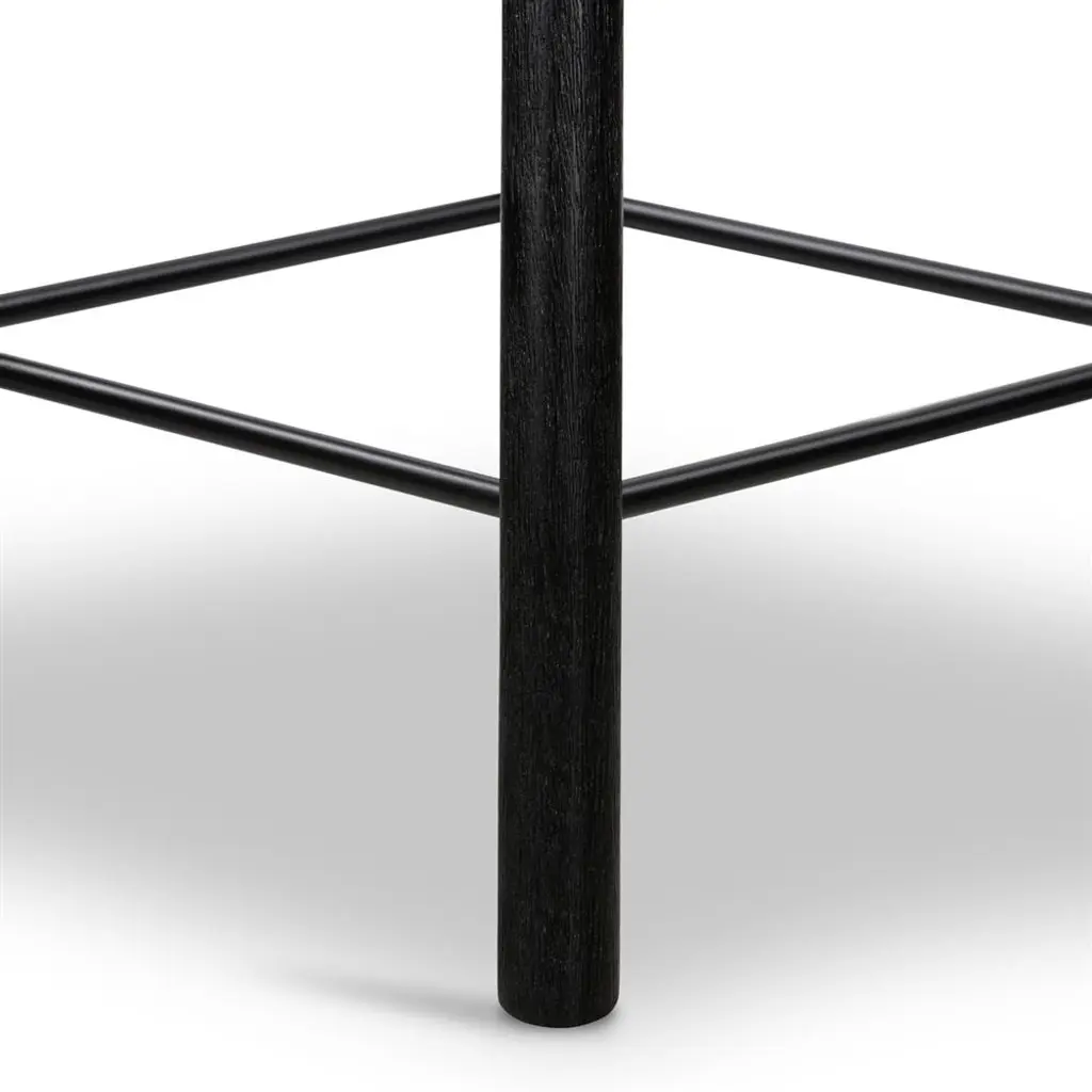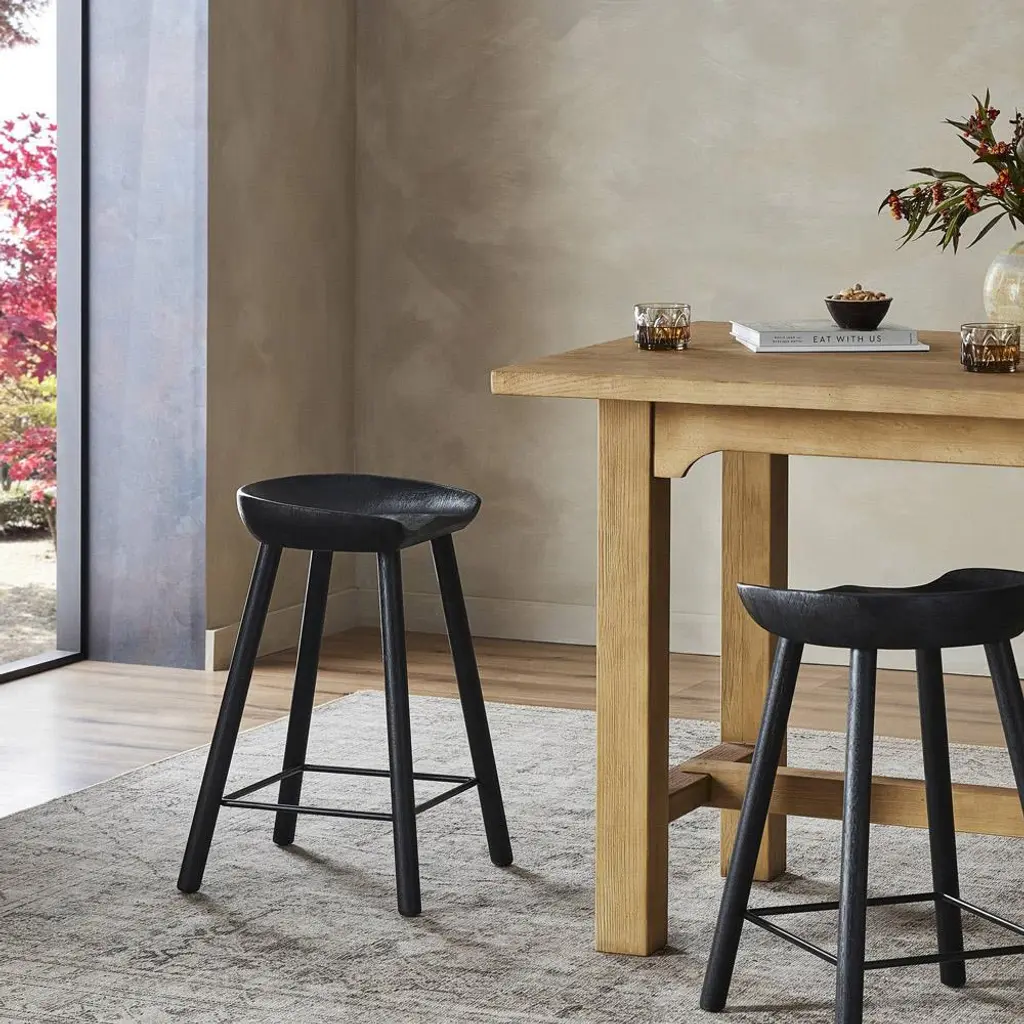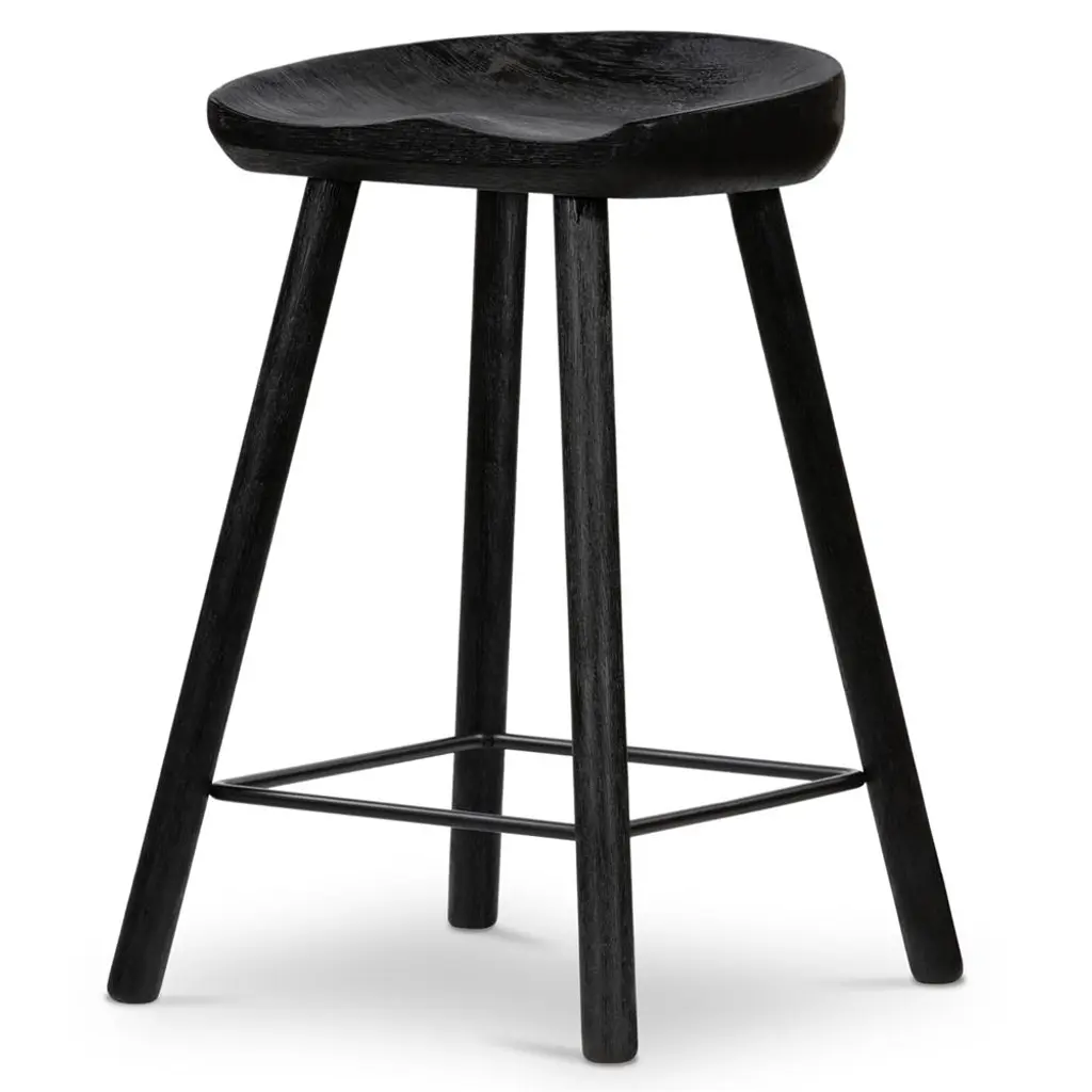 With a classic silhouette and durable materials, the Jimmy counter stool is sure to be a staple in your kitchen for years to come. Crafted from matte black-finished parawood with black iron stretchers, this timeless stool features a contoured seat for ultimate comfort.