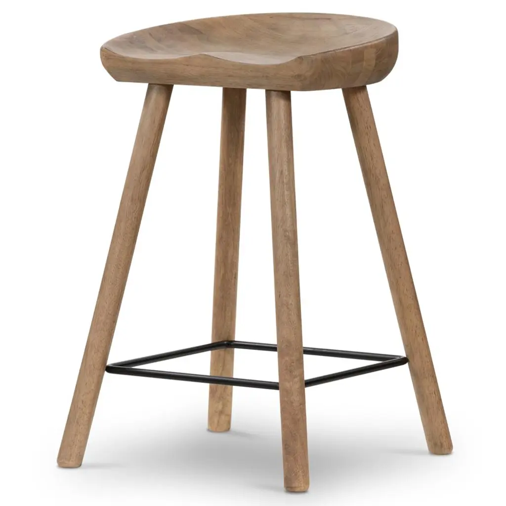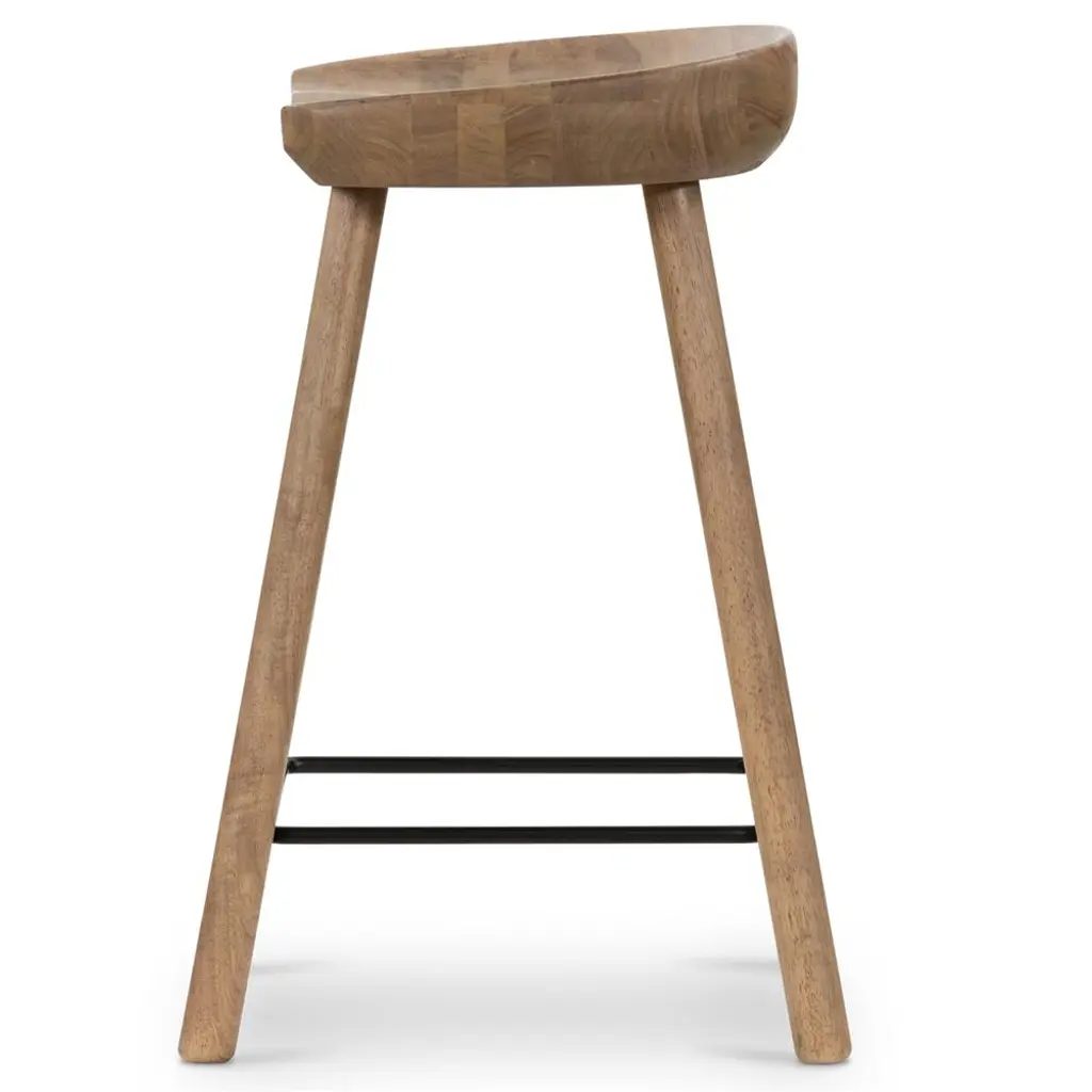 With a classic silhouette and durable materials, the Jimmy counter stool is sure to be a staple in your kitchen for years to come. Crafted from matte natural-finished parawood with black iron stretchers, this timeless stool features a contoured seat for ultimate comfort.