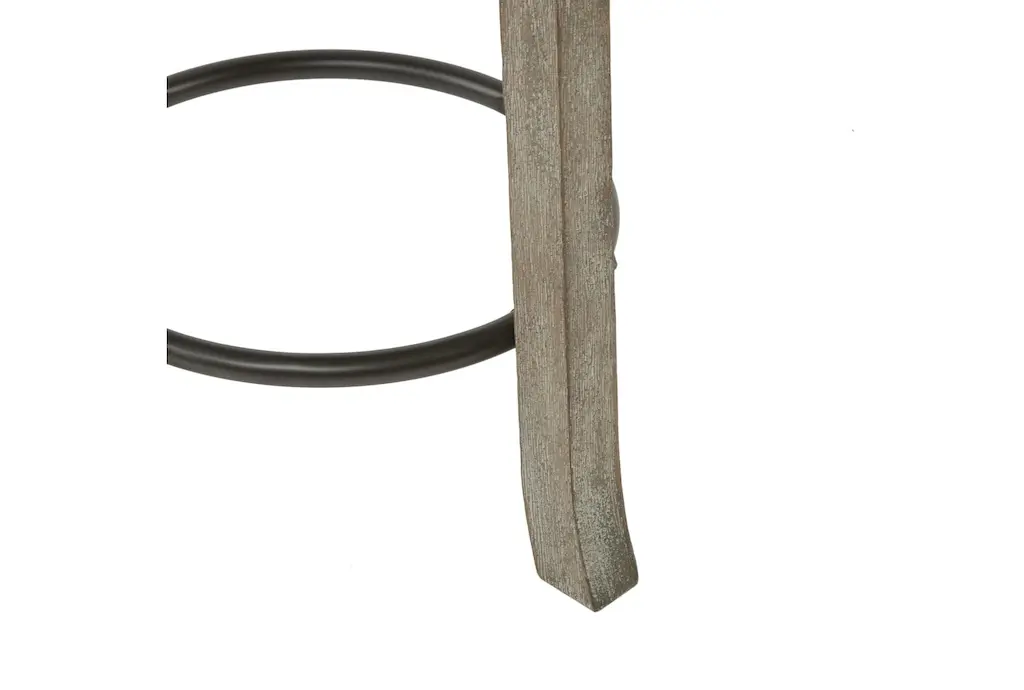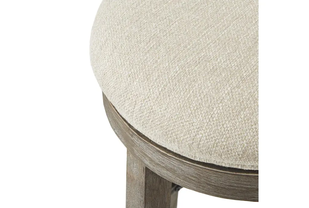 The Joshua 26" Backless Swivel Counter Height Stool is a perfect addition to any dining room or kitchen. Its casual style and neutral grey color make it versatile for various decor themes. The stool features a comfortable upholstered seat made from 100% polyester and a solid wood frame in an aged oak finish.