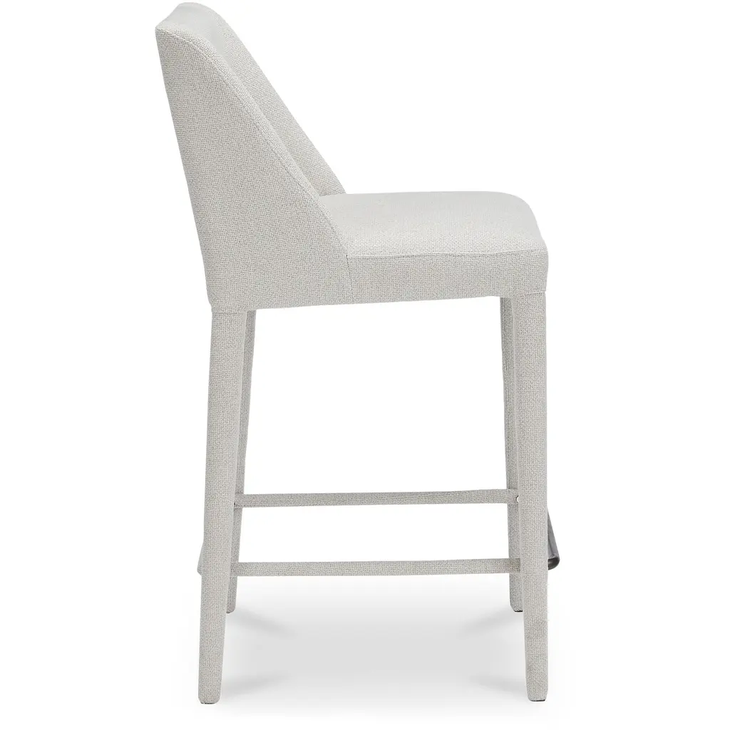 Fully upholstered in light brown performance fabric, the Joyce counter stool's cohesive silhouette exudes sophistication. The carved lower backrest adds visual lightness, while extended sides offer cradling support.