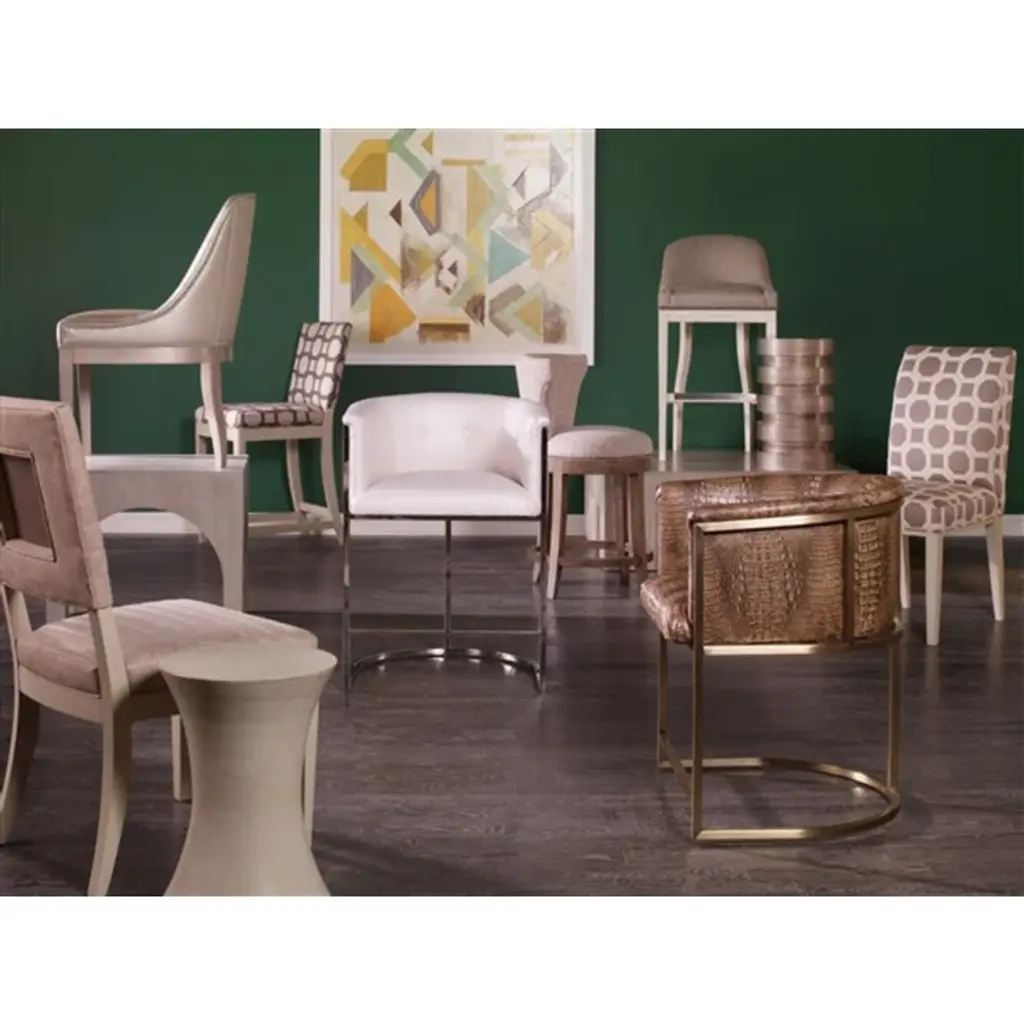 The Juliet counter stool is part of the Juliet collection. Shown in Nate alabaster with a dove gray finish.