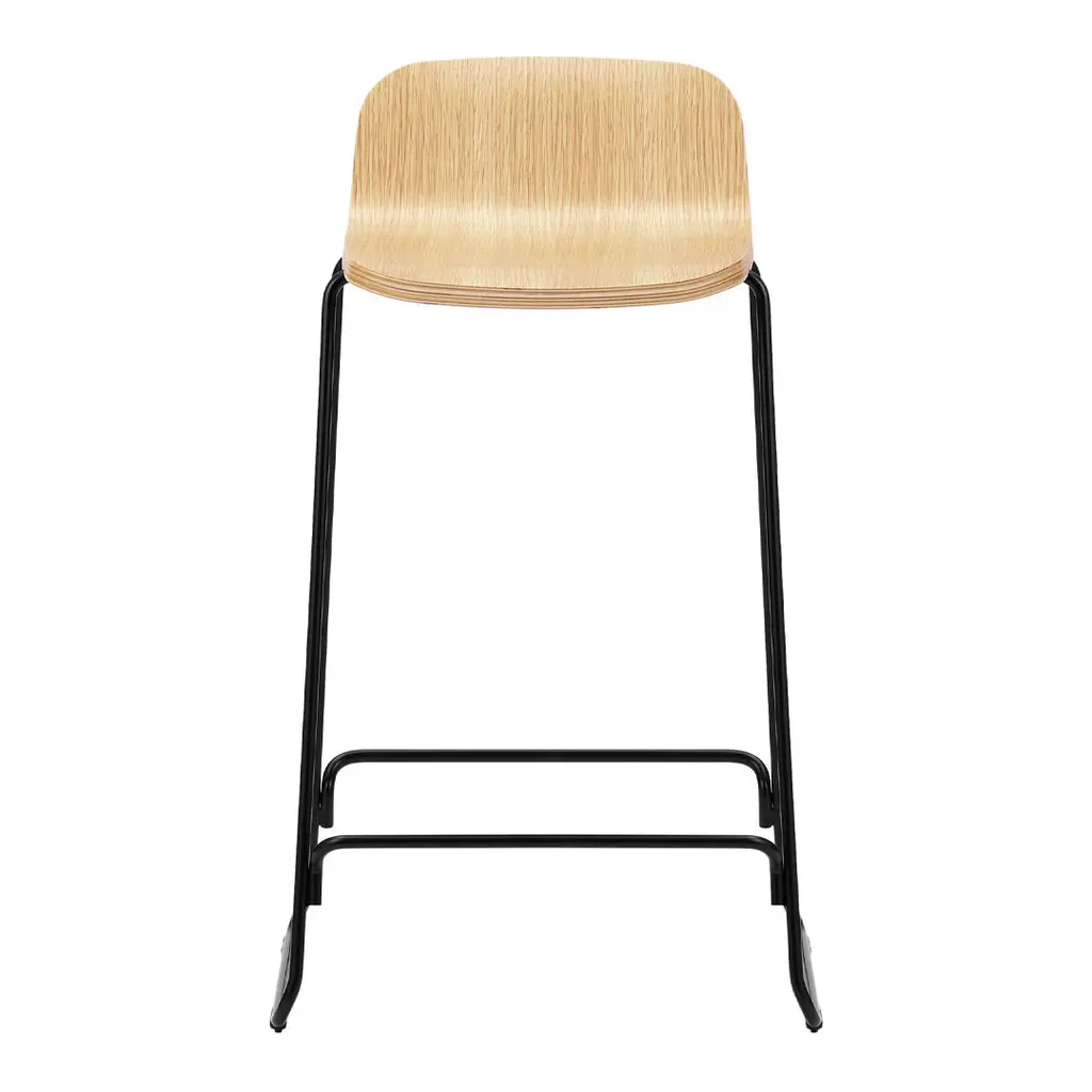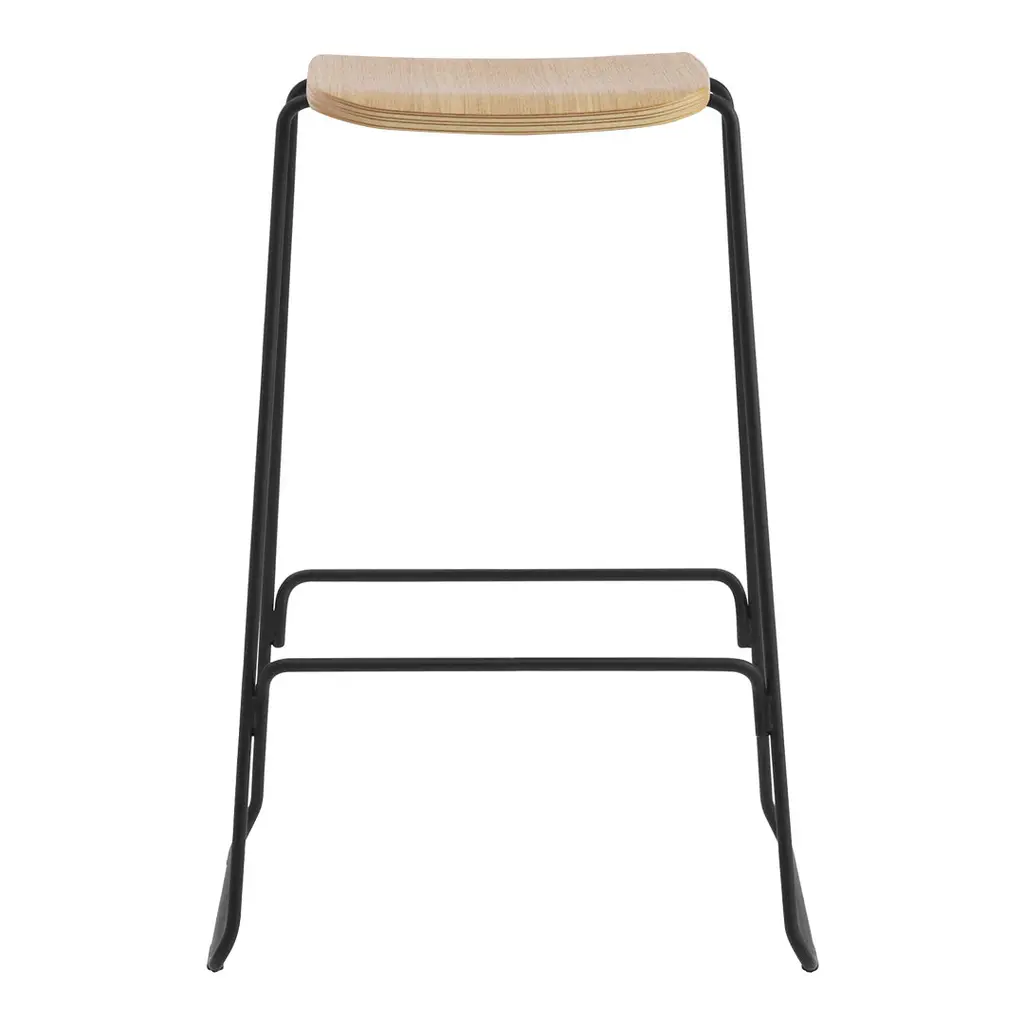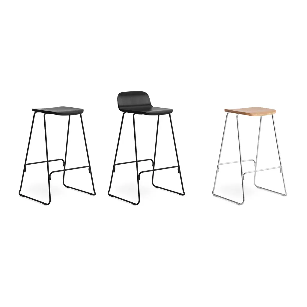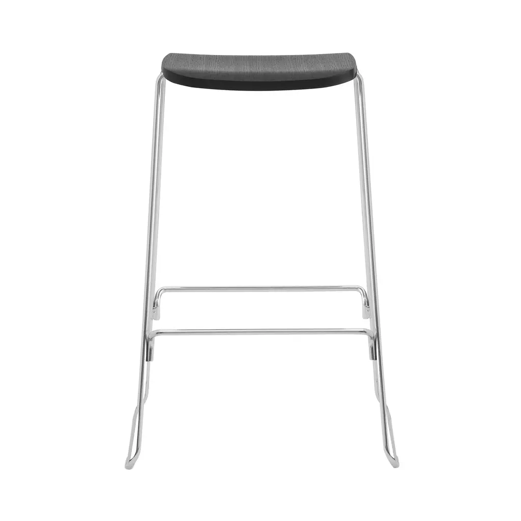 Easily adapting their veneer shell chair to a backless bar and counter stool, Iskos-Berlin illustrate the flexibility of the signature molded design. Just offers a comfortably curved seat and stable metal base with a handy footrest, integrating as a whole nearly seamlessly. The characteristic simplicity of the series is reflected in the choice of natural oak finish with a chrome base or in black-stained ash with black metal.