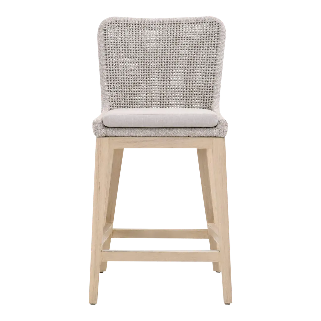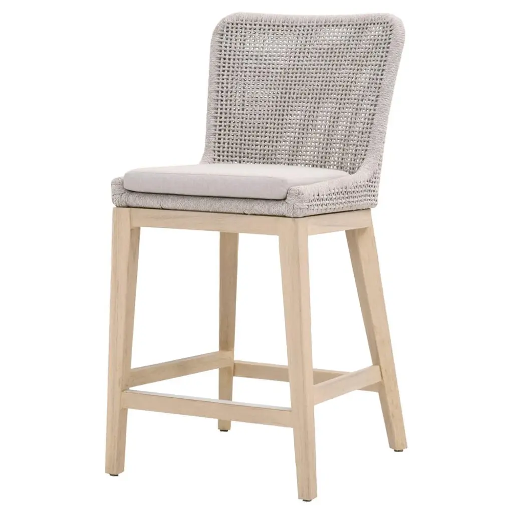 Add coastal beach sophistication to your outdoor space with our Kailey Coastal Taupe Woven Rope Grey Teak Outdoor Counter Stool. Beautifully crafted from solid teak wood, aluminum, and rope, this designer outdoor counter stool comes complete with a removable upholstered seat cushion in pumice grey fabric, and features an intricate rope weave design and stunning solid teak wood base.