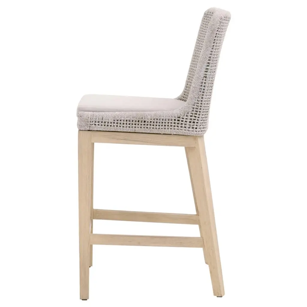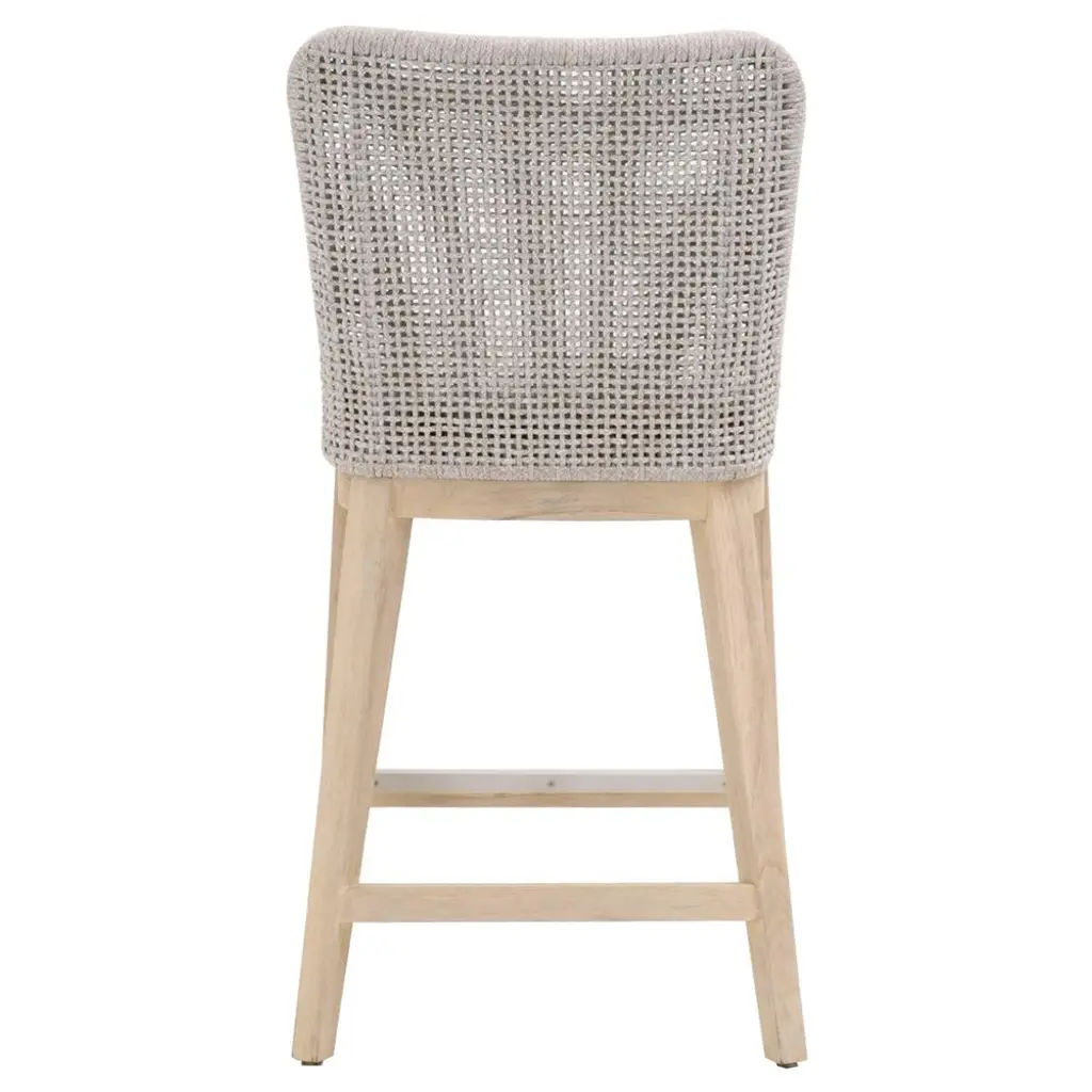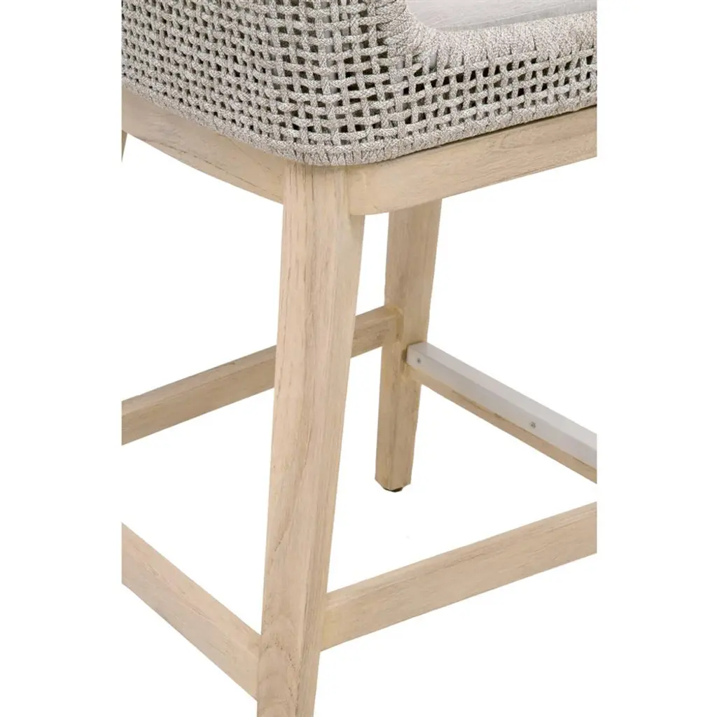 Kailey Coastal Taupe Woven Rope Grey Teak Outdoor Counter Stool