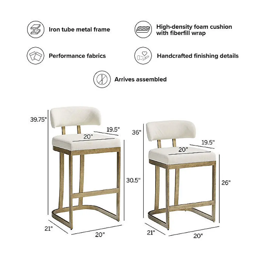 With an elevated, modern design that's perfect for kitchens and bars, this plinth-base stool features a low, wrap-around seat back and is upholstered in durable performance fabric that's both comfortable and elegant. Crafted of iron tube metal High-density foam cushion with fiberfill wrap for maximum comfort Performance fabric resists stains and repels water and oils, ensuring easy cleaning Handcrafted finishing details Nonmarring plastic foot glides Arrives assembled Imported A Frontgate exclusive. At Frontgate, our primary focus is quality. We guarantee that every product we sell will stand up to the supreme test – our customers' satisfaction. To learn more about our policies, visit our Shipping & Processing, Returns & Exchanges and Warranty & Price Guarantee pages.