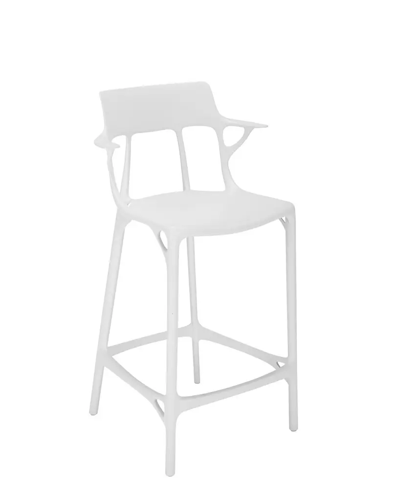 Kartell continues its ongoing commitment to sustainability with eco-friendly products which are part of the broader project expressed by the industrial manifesto Kartell loves the planet. A.I. is the chair created for the first time ever using recycled material, in which aesthetics and structural requirements remain unaltered, blending seamlessly with generative design.The A.I. family is growing, with the addition of A.I. STOOL RECYCLED, a product made from recycled material with a clear focus on comfort thanks to a broad, welcoming seat. Available in two heights to meet all needs.Colors available: white, black, gray.