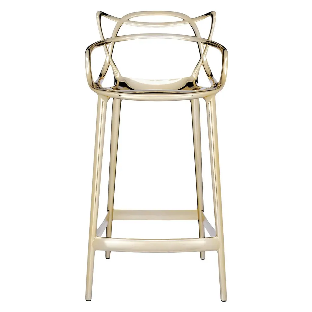Kartell also offers a stool version of the Masters chair, winner of the Good Design Award 2010 and the Red Dot Award 2013, and a worldwide best seller. The legs are lengthened and the seat is shrunk, but the frame's unmistakable graphic look, created by the weave of the silhouettes of three iconic chairs, remains the same. Masters stool is ideal for both the home and contract sales, as well as outdoor use.Made of: Polycarbonate. Outdoor use.