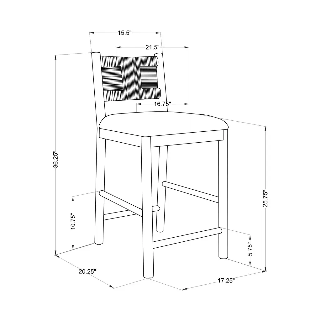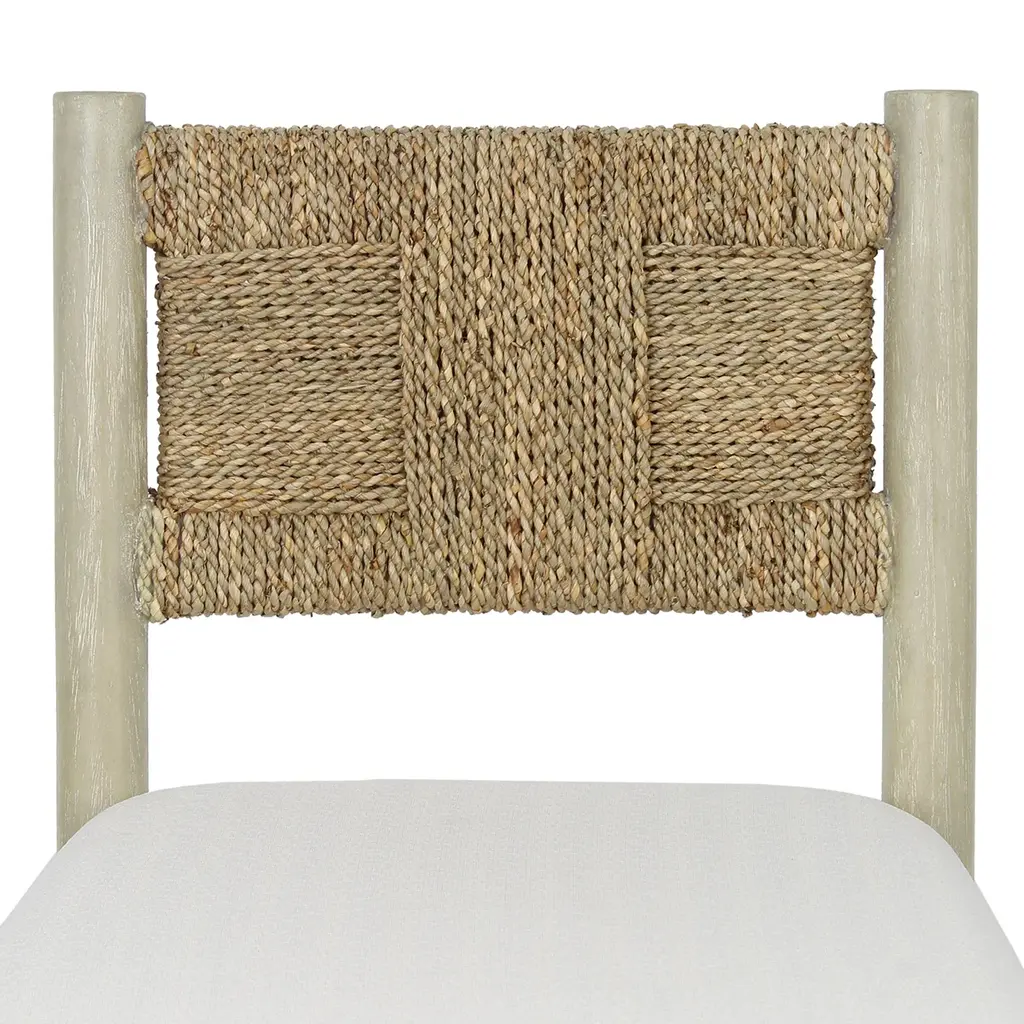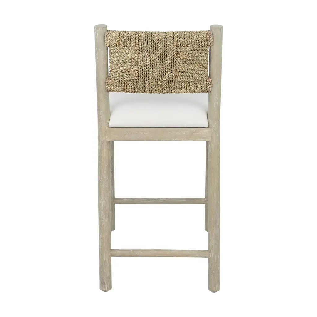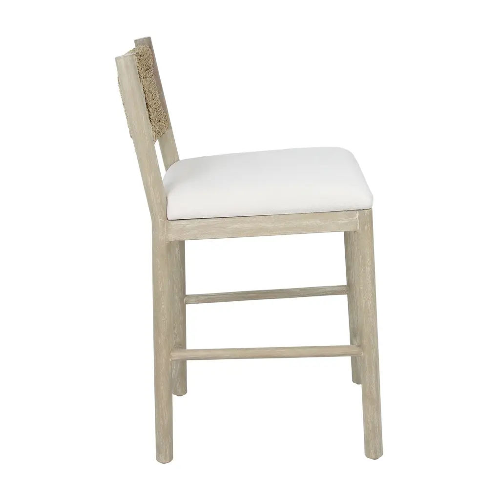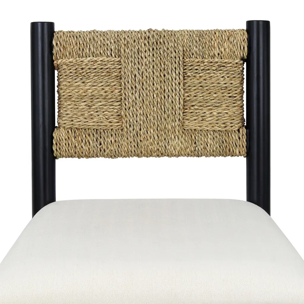 Elevate your kitchen or bar space with the organic charm of the Kauai Woven Seagrass Counter Stool. Sustainably sourced and handwoven, the seagrass details wrap the front and back of the stool’s backrest, offering a textured, artisanal touch that enhances coastal and transitional interiors alike. The stool's sturdy, kiln-dried mahogany wood frame features elegantly rounded legs, adding a refined design element that balances style and stability. Available in a natural wood or a striking black wood finish, it complements a variety of decor styles. A white fabric cushion ensures comfortable seating for relaxed meals or gatherings. Complete your space with other pieces from the Kauai collection.