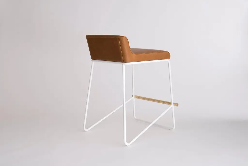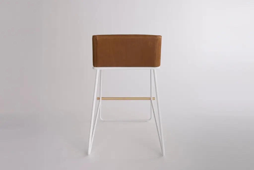 Kickstand Counter Stool by Phase DesignDimensions: D 57.2 x W 52.7 x H 76.2 cm. Materials: Leather, powder-coated metal and brushed brass.Fabric price not included.Solid steel bar available in a flat black or white powder coat finish with solid brushed brass bar and upholstered top. Powder coat finishes are available in custom colors. Upholstery may be sourced in Customer Own Material (COM), Customer Own Leather (COL), or in Phase Design's suggested fabrics and leathers. Prices may vary. Please contact us.Collection of stools, dining chairs, and lounge chairs, where upholstery sits atop powder coated metal bases. Each piece is accentuated with a deliberate solid brass bar detail. Autodidact award-winning designer Reza Feiz has always been drawn to the strength in simplicity. Lured to Southern California by its inventive, creative spirit, he quickly discovered his true calling among the vast community of creators and artisans whose skills and ingenuity expertly transform imagination into reality.Inspired by Los Angeles’ iconic landscape and the compelling beauty of the places and spaces he encountered, he envisioned furniture, lighting and tabletop accessories, fabricating them from contemporary materials with the help of a tightly knit coterie of craftspeople.The resulting restrained yet revolutionary pieces have garnered enthusiasm from an international audience.He’s been lauded as “An American designer who influences world design”, a “Style Pioneer” and “One of a group of select young designers who represent the leading edge of discovery in design.” Architectural Digest’s Mayer Rus noted that his “wide-ranging collections make a strong case for the enduring appeal of restrained modern design.” Surface Magazine raved that he “imbues his work with a 21st-century edge. His astute sense of restraint keeps the designs relevant in a constantly evolving industry, without needing to subscribe to trends.”“Reza Feiz imbues his work with a 21st-century edge. His astute sense of restraint keeps the designs relevant in a constantly evolving industry, without needing to subscribe to trends.”