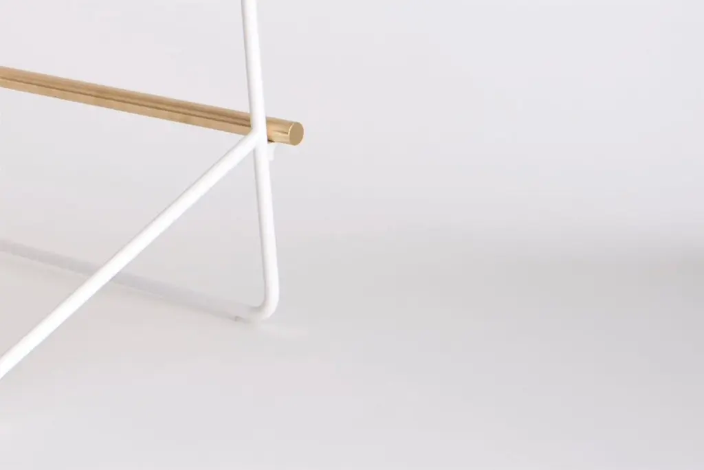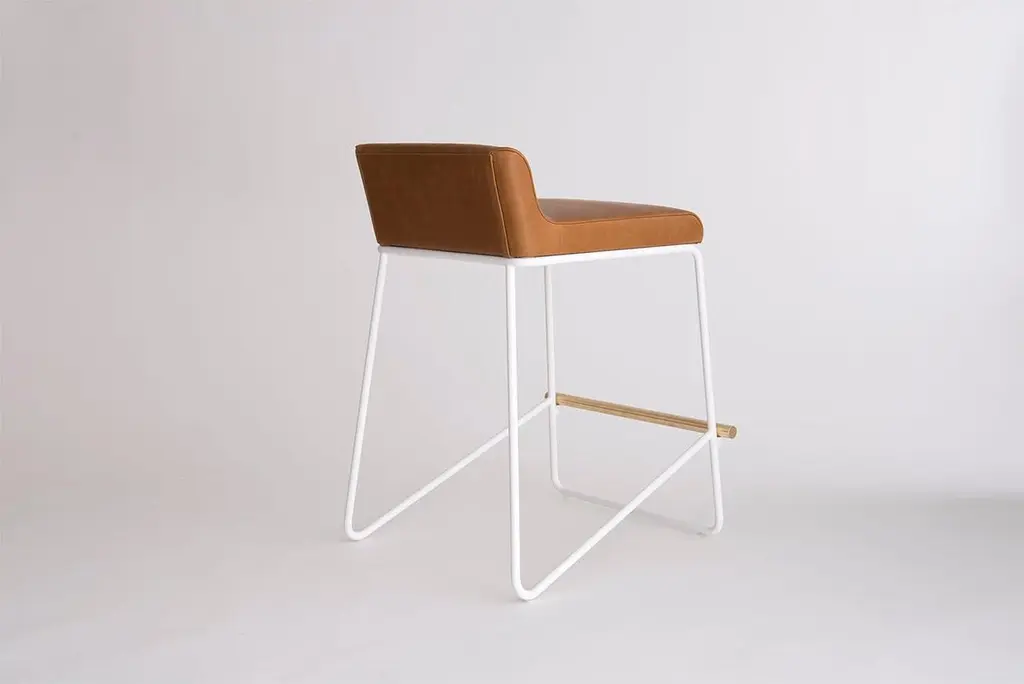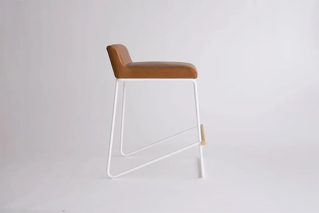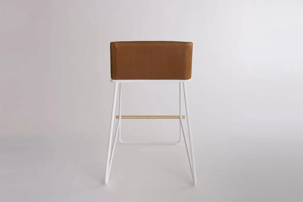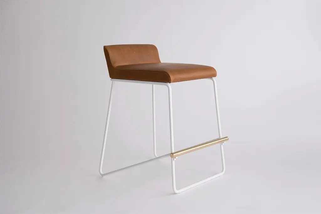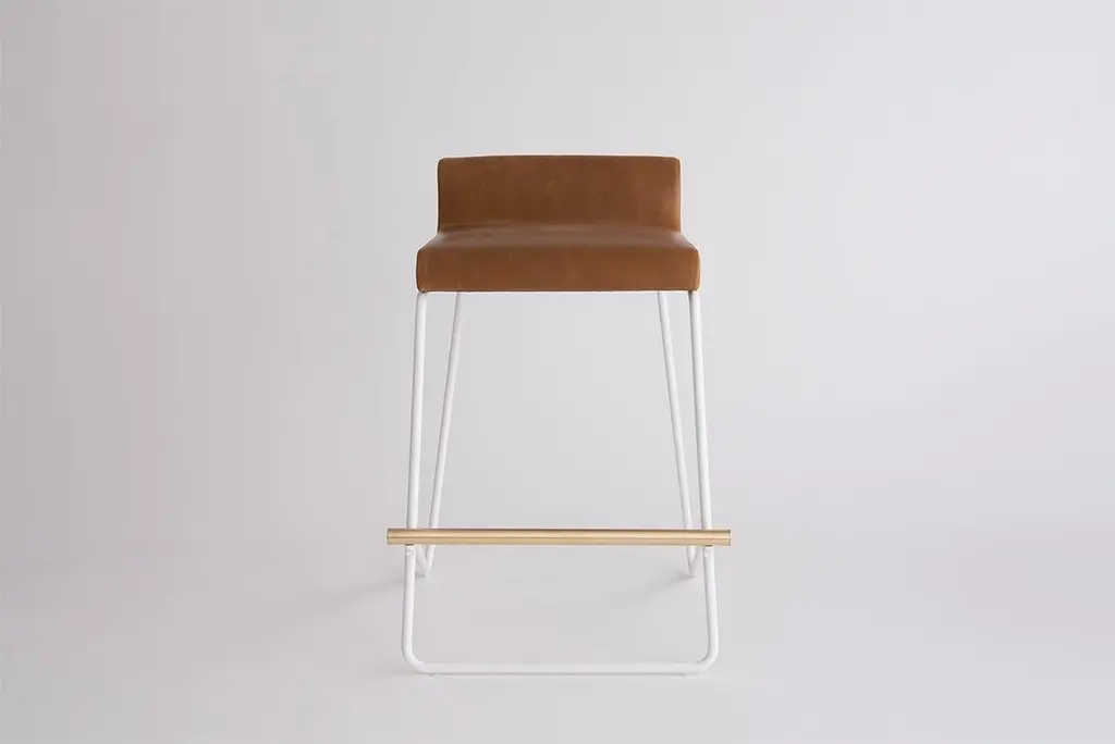 Listed price is for the Kickstand counter stool in powder coat (flat black or flat white) with a solid brushed brass footrest and Hallingdal by Kvadrat fabric.COM is also available, with a List price of $ 2,320.00.The Kickstand Counter stool is also available in leather, with a List price of $ 2,939.00 in Harness by Moore & Giles leather, and $ 2,480.00 in COL.Prices exclude packing. Collection of stools, dining chairs, and lounge chairs, where upholstery sits atop powder coated metal bases. Each piece is accentuated with a deliberate solid brass bar detail.Solid steel bar available in a flat black or white powder coat finish with solid brushed brass bar and upholstered top. Powder coat finishes are available in custom colors. Upholstery may be sourced COM, COL or suggested fabrics and leather. (COM requirements = 1.5 yards , COL requirements = 27 sq ft).