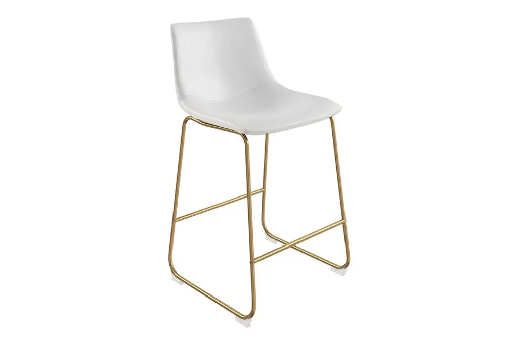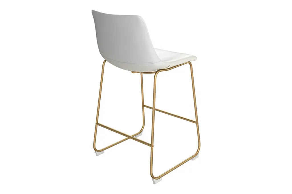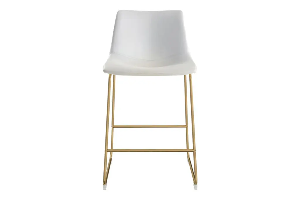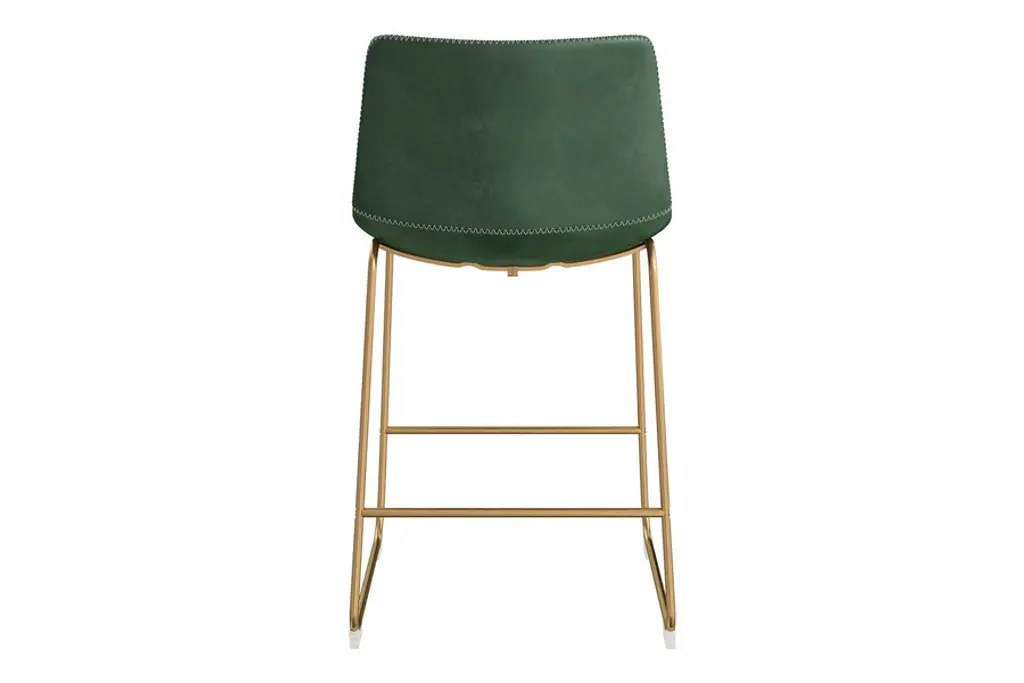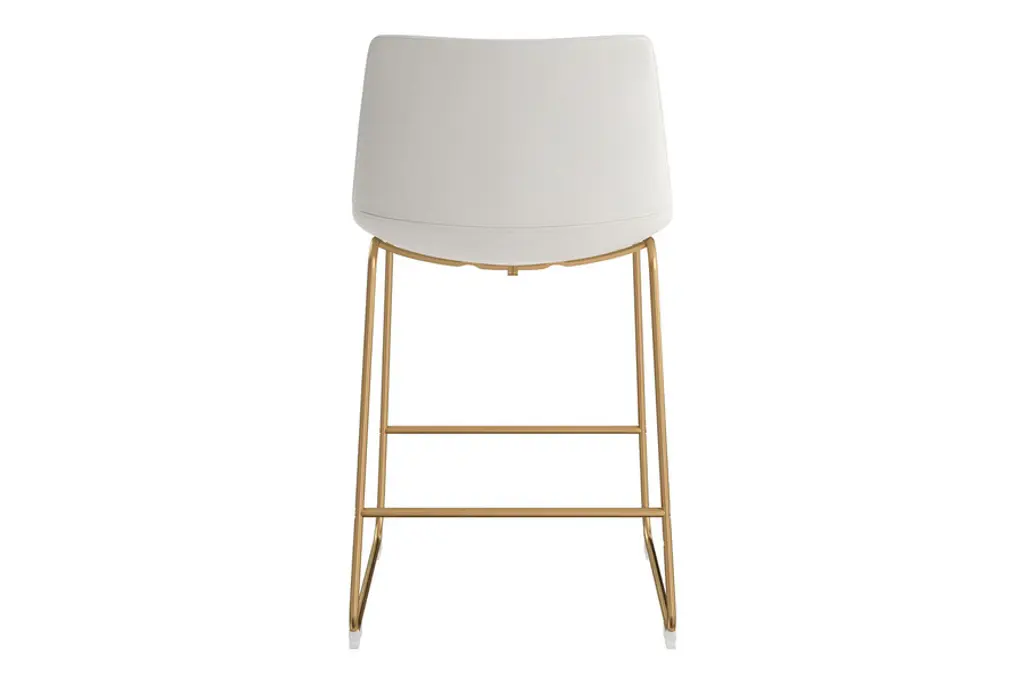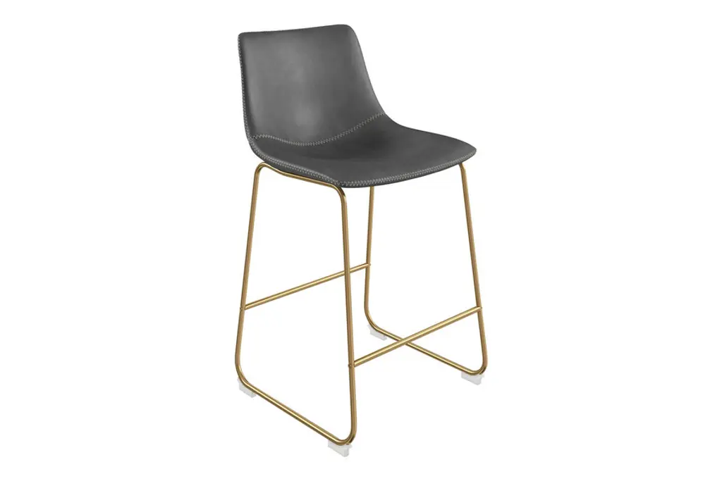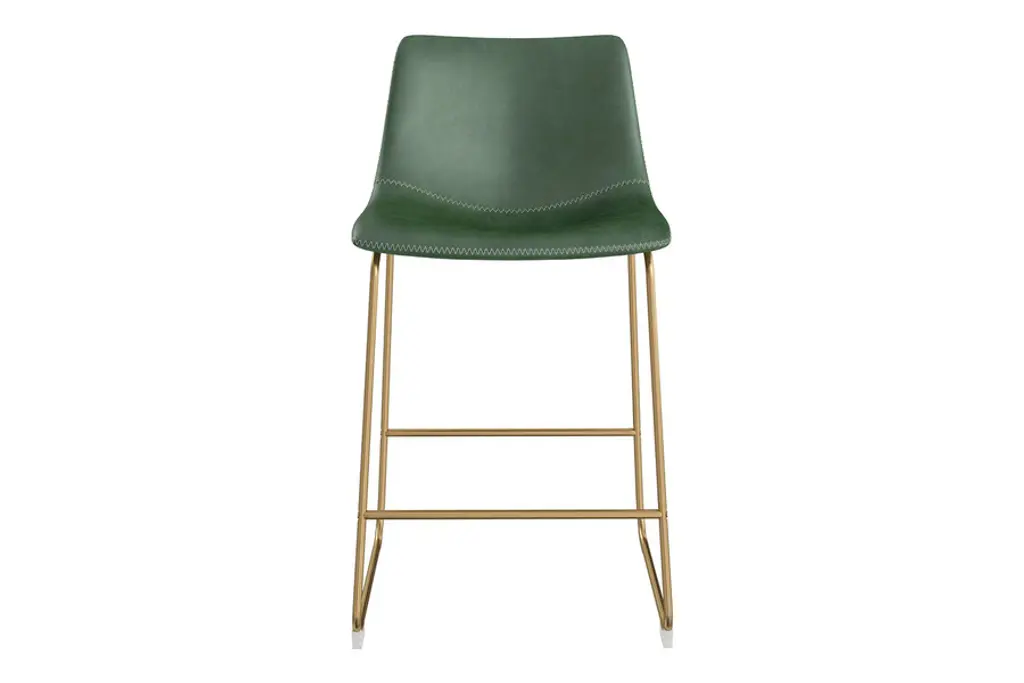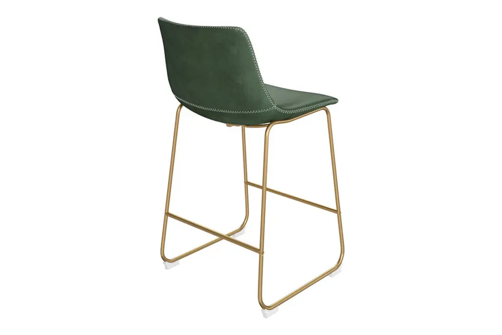 The Kiersten Counter Stool is a luxurious, timeless design for everyday dining at your counter-space. Combining ultra-modern with a sensibility that is soft and chic, upholstered in performance leatherette, the Kiersten will fit right at home in your color choice. The Kiersten is available in a variety of elegant seat finishes including vintage gray, green, black and vintage cream white, each with its own unique accent stitching in a contrasted color (for a rustic-meets-modern look), or a sleek white on white, with a linear stitch pattern. The seat's form-fitting curves are supported by a sturdy metal base, proving that the Kiersten is comfortable and will stand the test of time. Are you looking for the bar height stool, click here to go to the Kiersten Bar Stool.