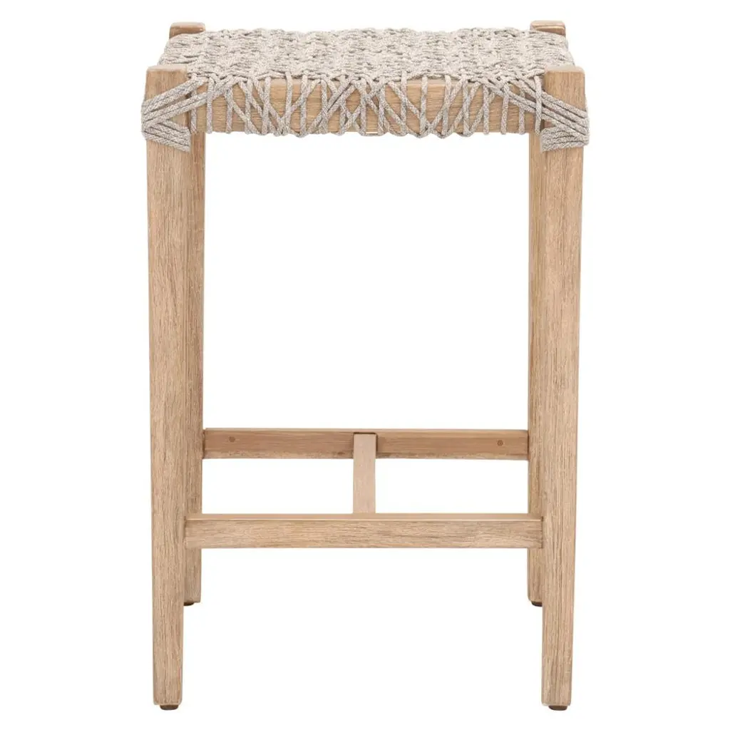 Kristoffer Coastal Beach Woven Rope Natural Grey Mahogany Backless Counter Stool