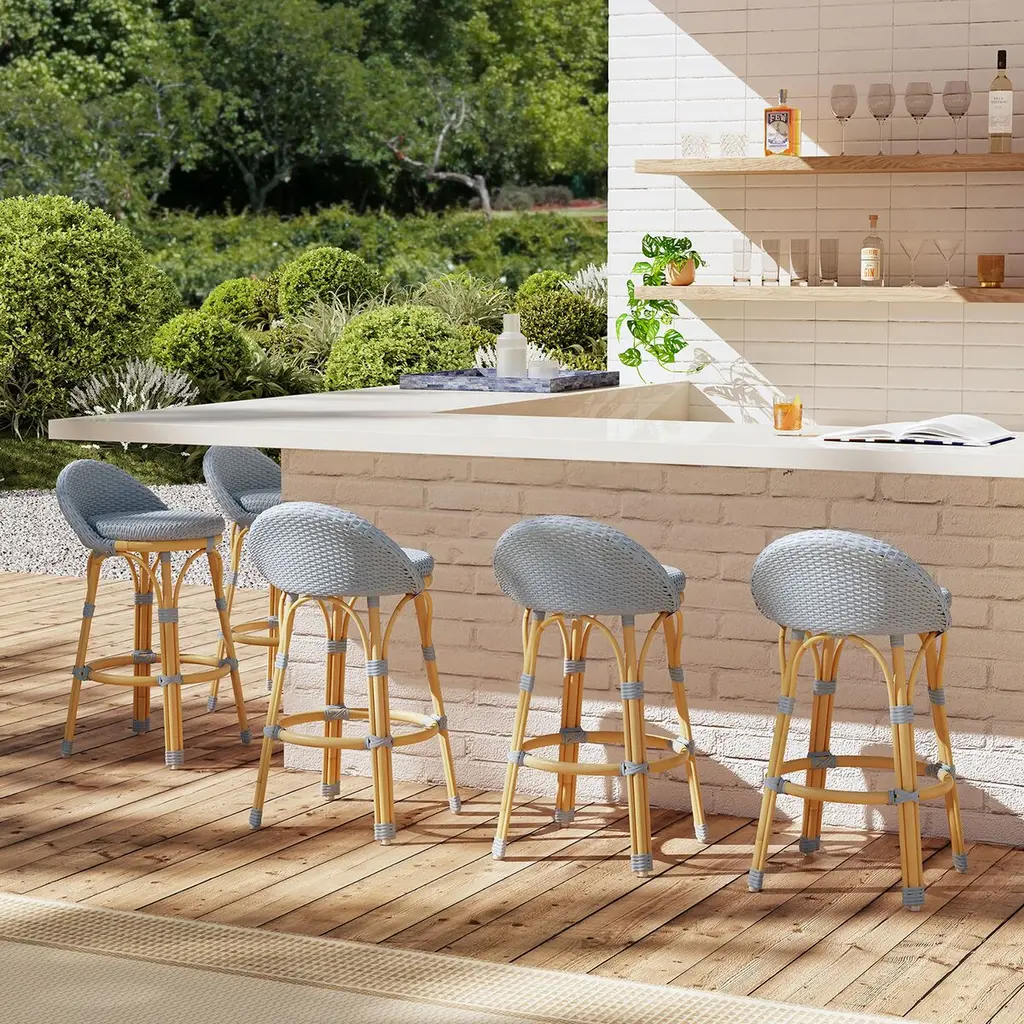 Kye 24" Rattan Outdoor Low Back Counter Stool