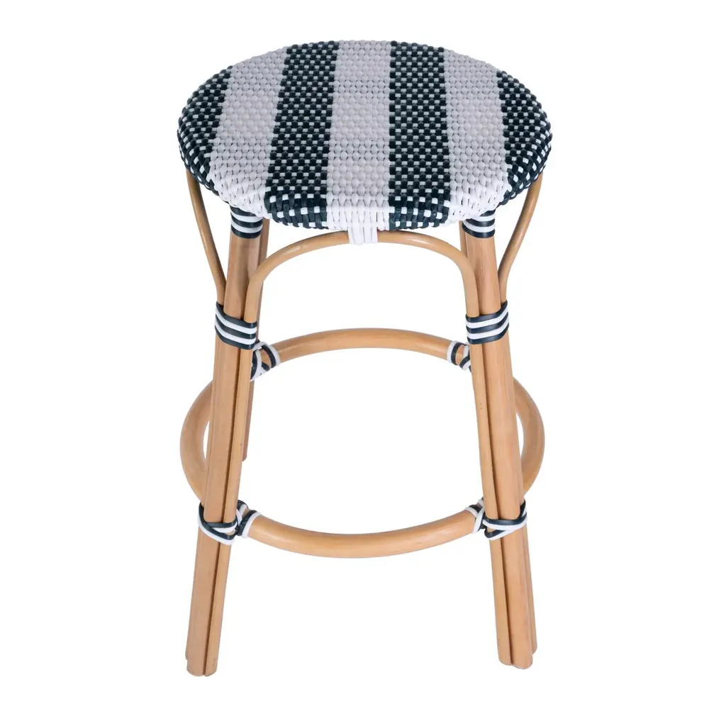 Evoking images of sidewalk tables in the Cote d'Azur, these stools will give your kitchen or patio the casual sophistication of a Mediterranean coastal bistro. Expertly crafted from thick bent rattan for superb durability, they feature weather-resistant woven plastic. These stools are lightweight for easy mobility, providing comfort to make any space a frequent gathering place.