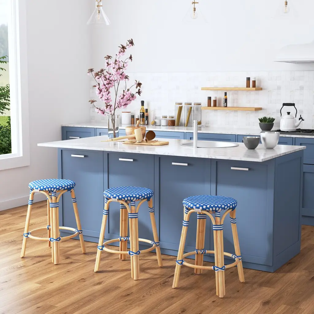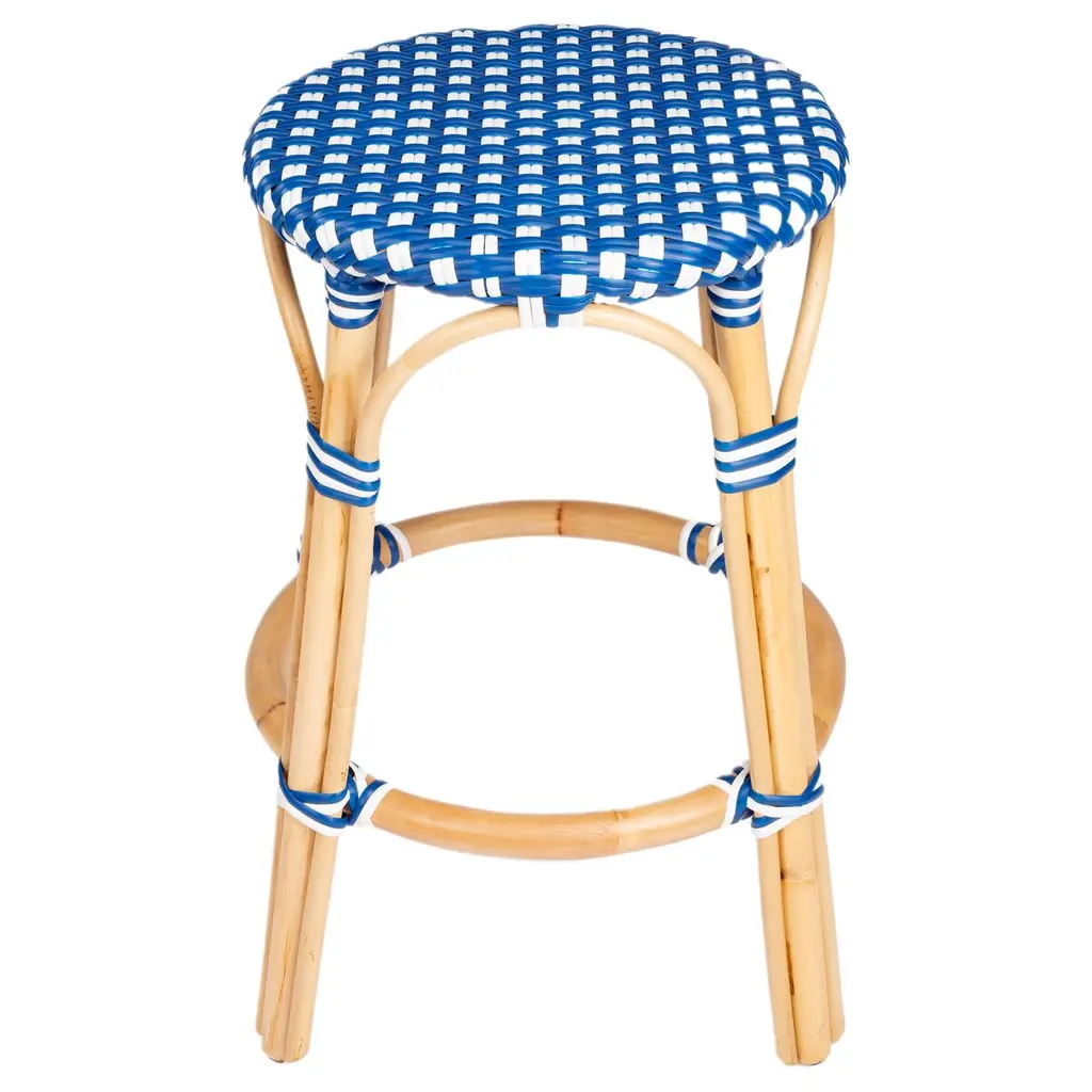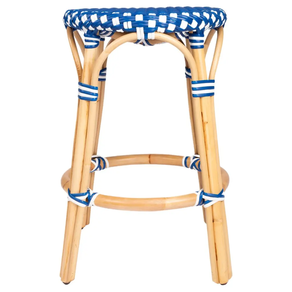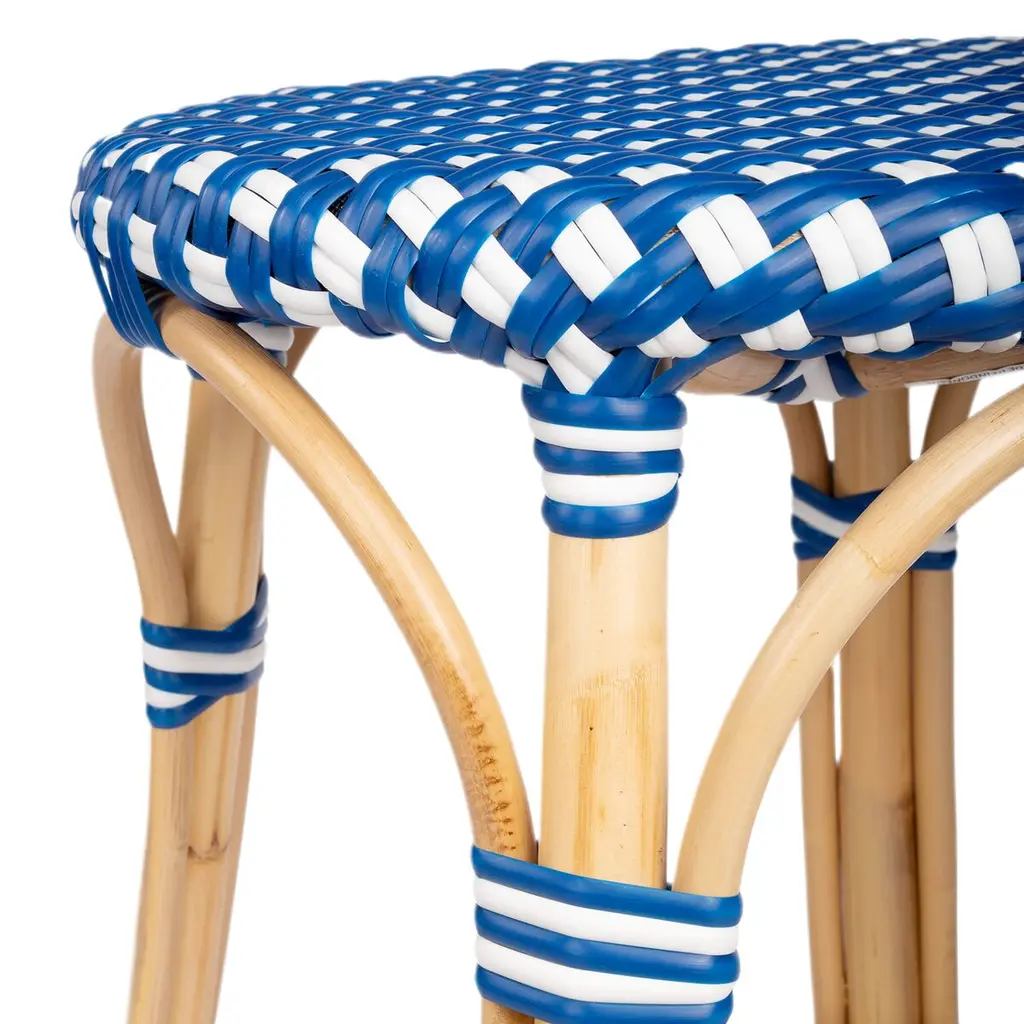 Evoking images of sidewalk tables in the Cote d'Azur, these stools will give your kitchen or patio the casual sophistication of a Mediterranean coastal bistro. Expertly crafted from thick bent rattan for superb durability, they feature weather-resistant woven plastic. These stools are lightweight for easy mobility, providing comfort to make any space a frequent gathering place.